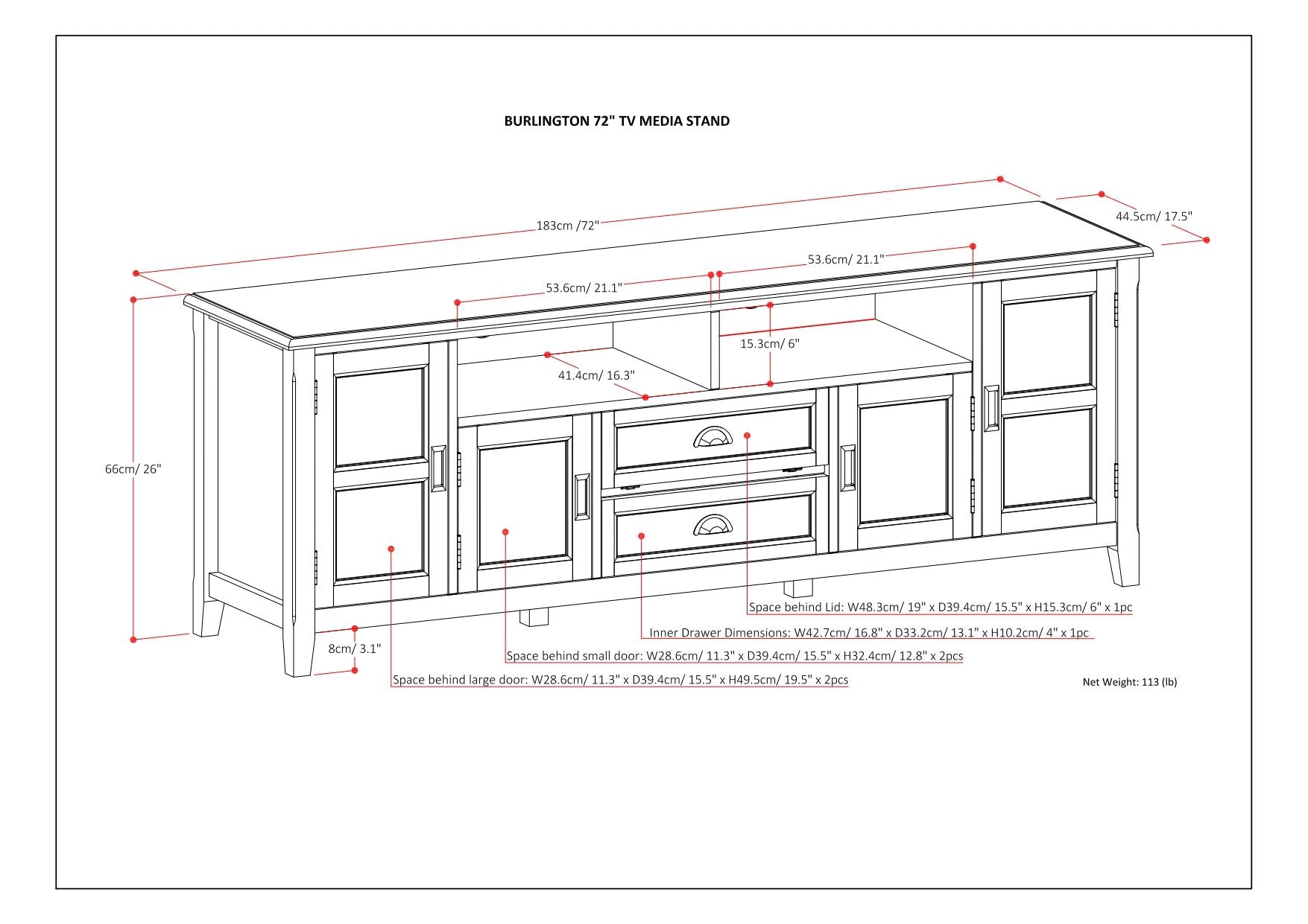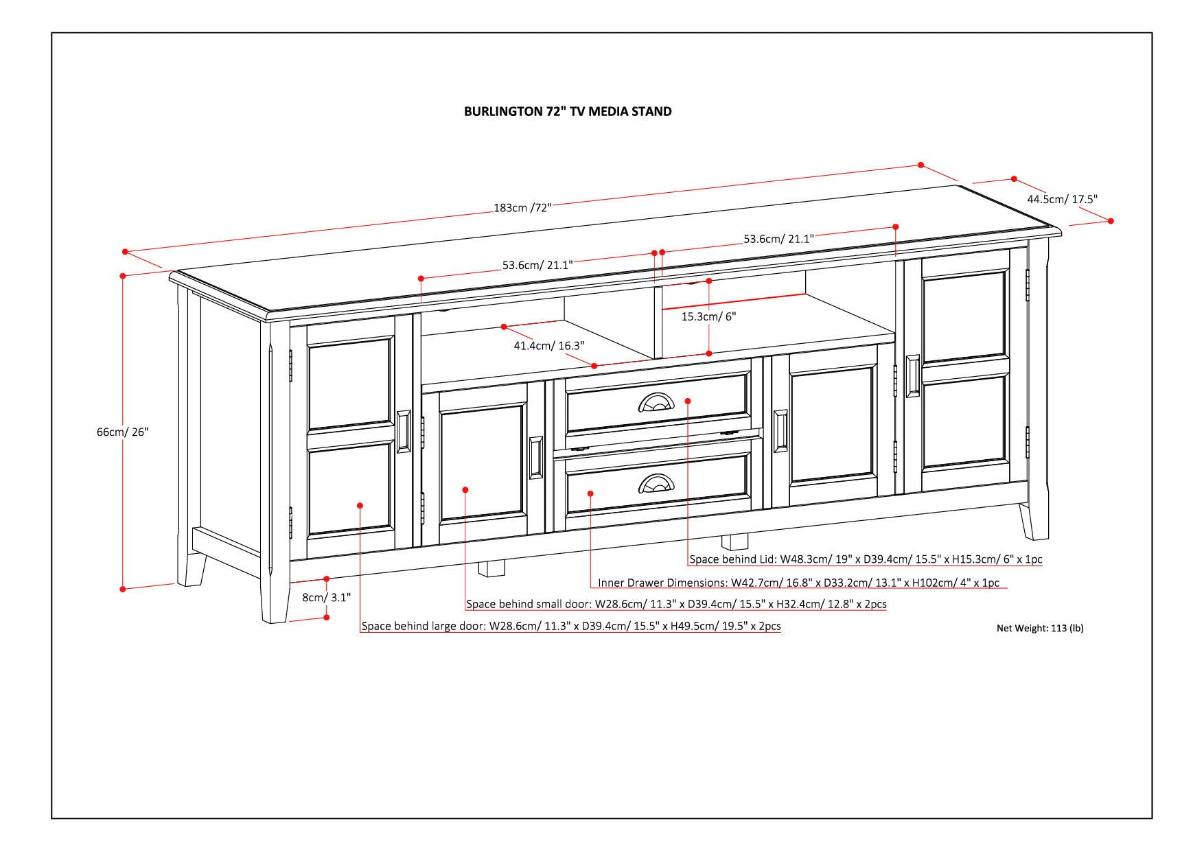 72.0"W x 17.5"D x 26.0"H - 112.4 lb