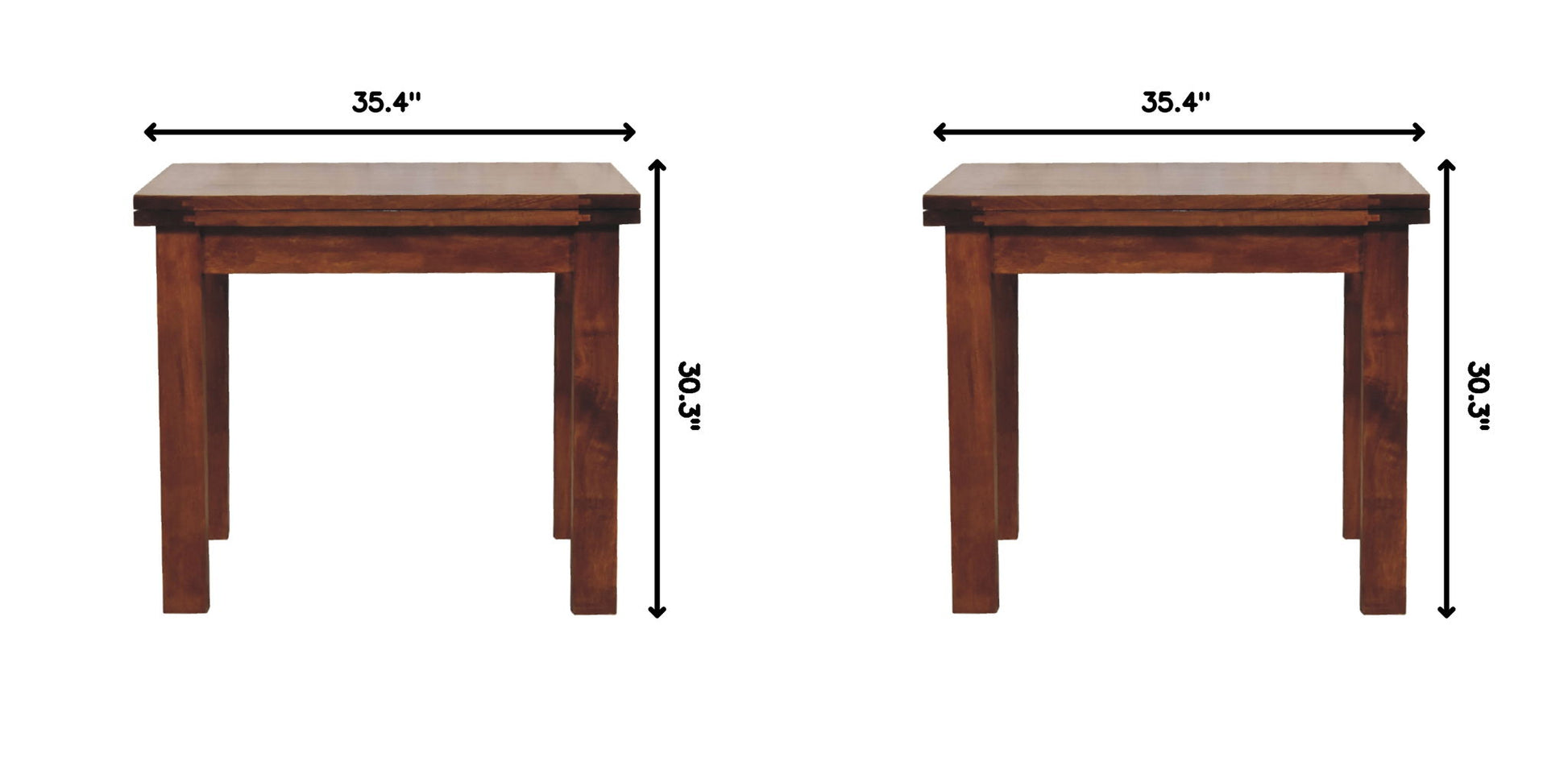 - Chestnut Butterfly Dining Table - This butterfly table is a charming piece excellent for intimate dinners for two, it has a butterfly extension that stores beneath the tabletop and is easy to use. This piece has been built to last in solid mango wood with a oak-ish finish and simple functional design.