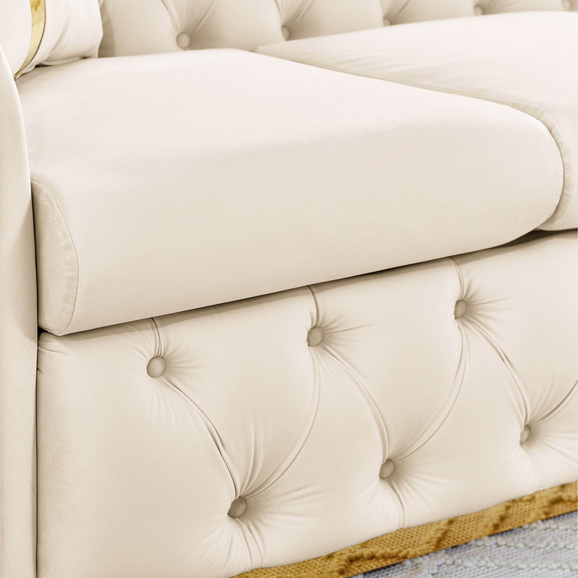 Velvet Button Tufted Sofa Couch With 2 Pillows 3 Seater Luxury Chesterfield Sofa Set With Stainless Steel Accents For Living Room - Beige