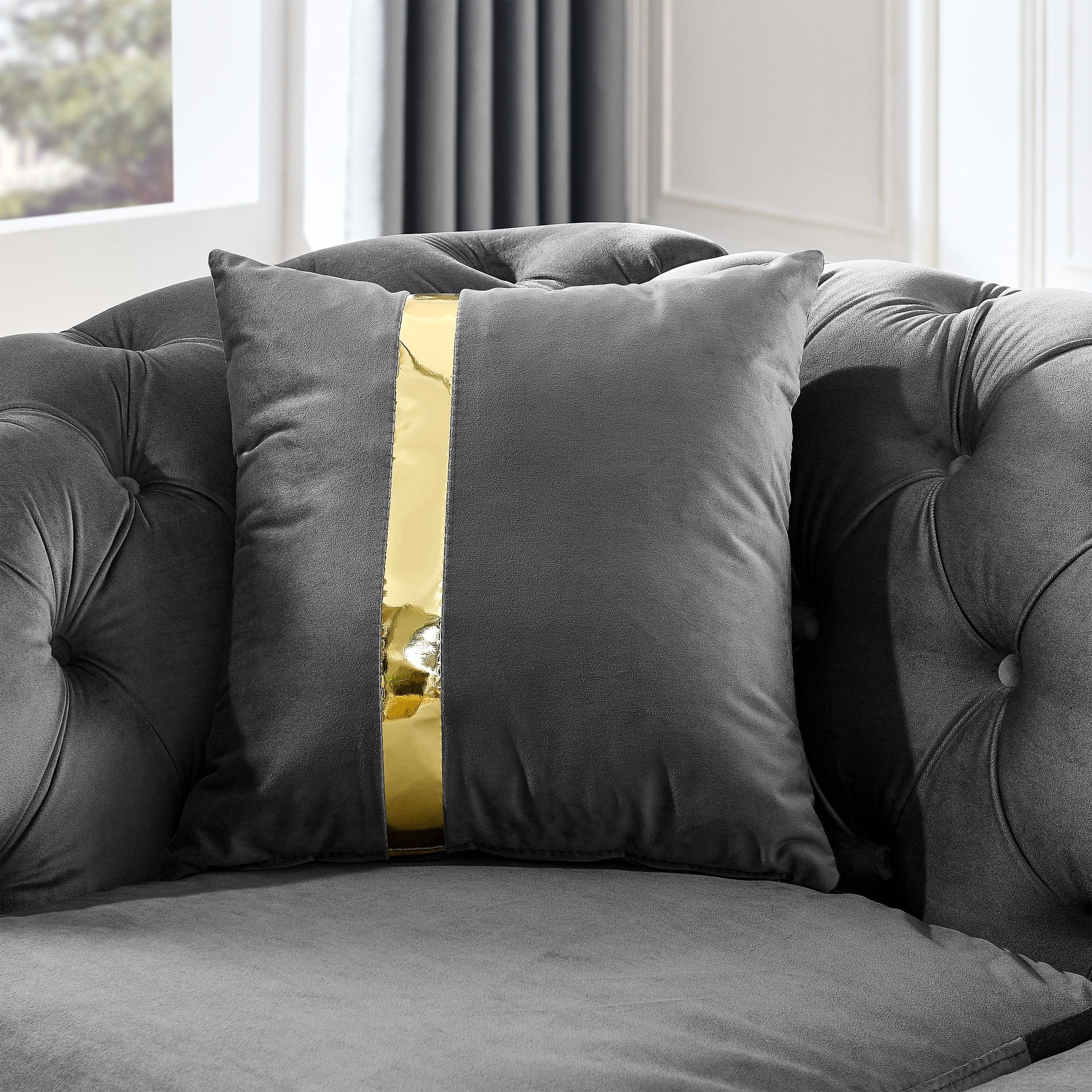 Velvet Button Tufted Sofa Couch With 2 Pillows 3 Seater Luxury Chesterfield Sofa Set With Stainless Steel Accents For Living Room - Gray