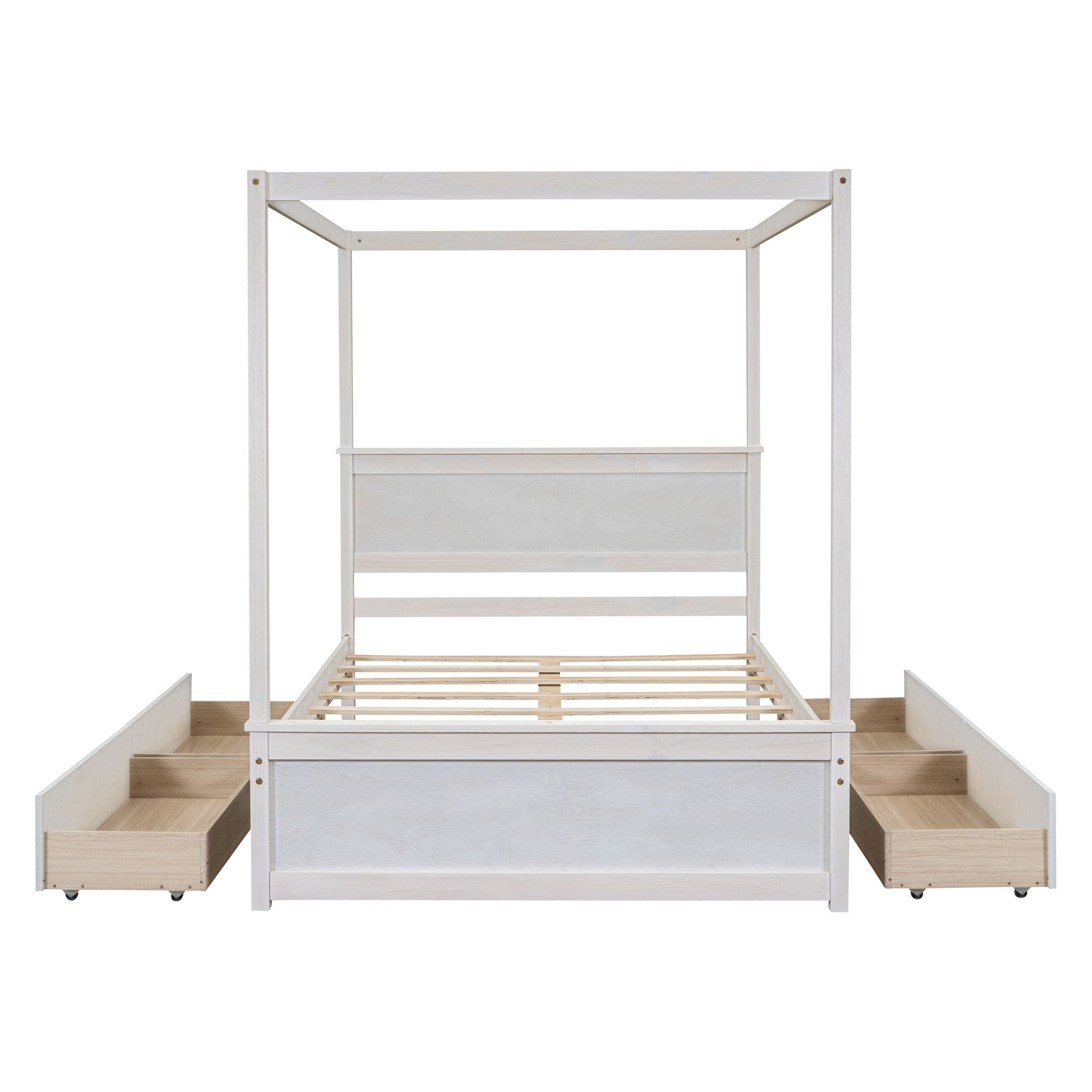 Full Size Canopy Platform Bed With 4 Drawers And Support Slats, No Box Spring Needed - Brushed White