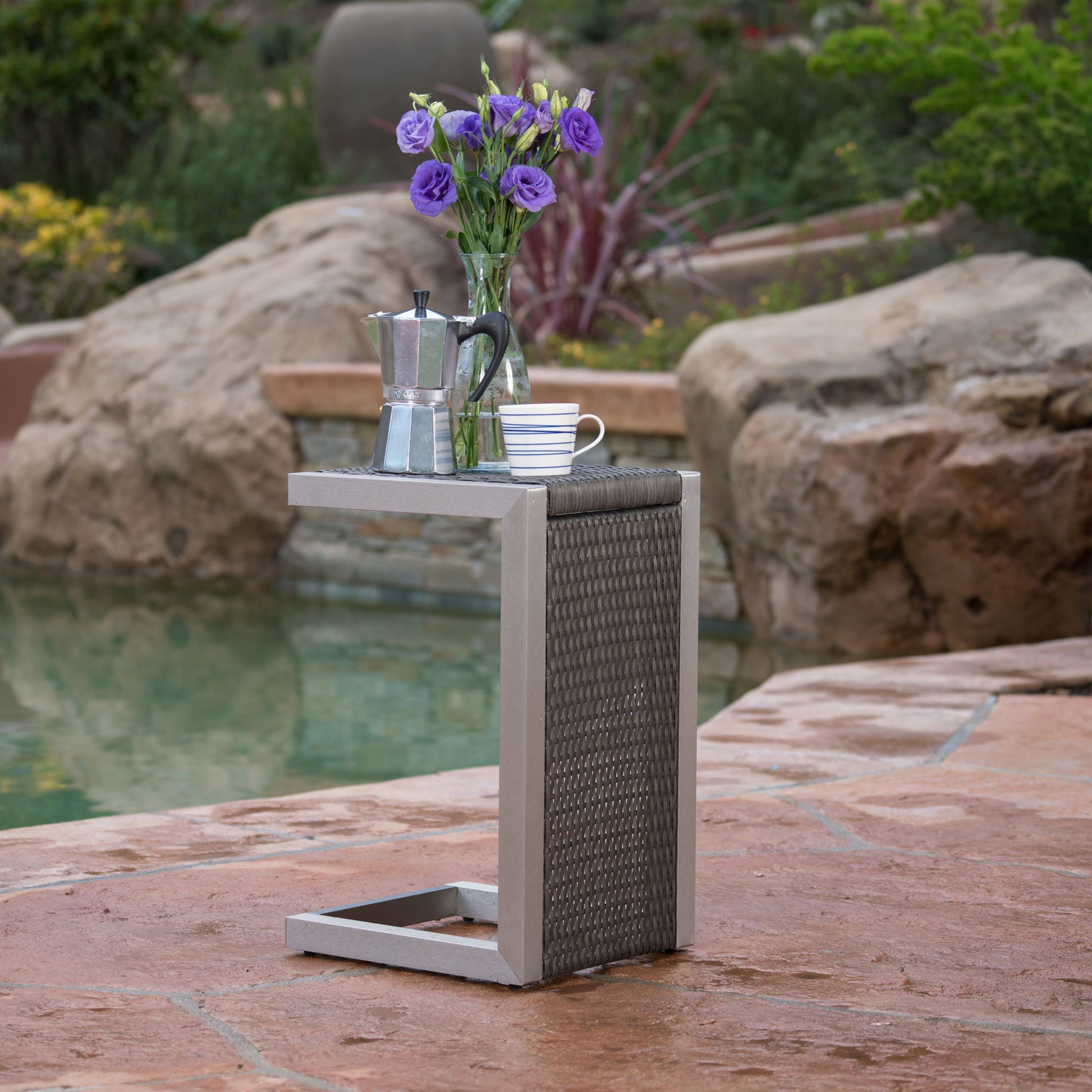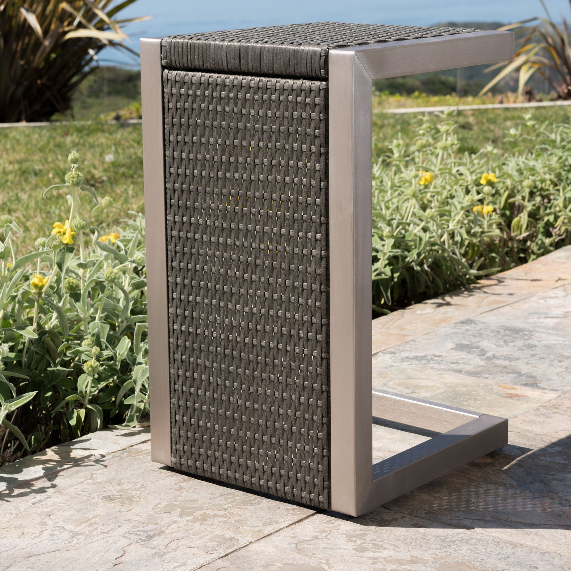 - MODERN DESIGN: With clean, precise lines, our side table is the ideal modern accessory for your outdoor space. Finished with a sleek aluminum frame, this table not only offers a chic, minimalistic look but also provides incredible structure.