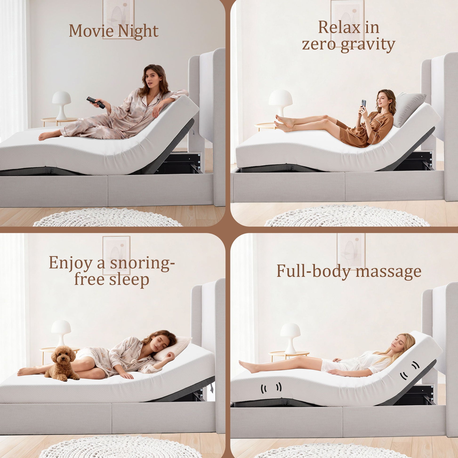 - Fully Adjustable Sleep System: Independent head and foot incline, zero gravity mode, and dual massage motors for customizable comfort and health benefits