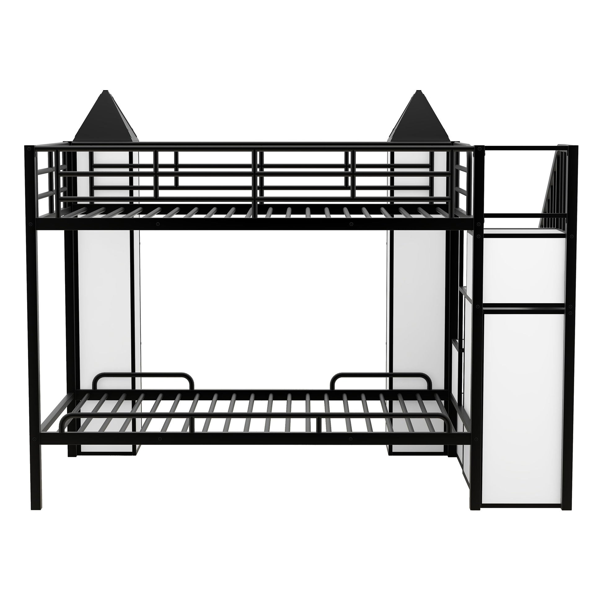 Twin Over Twin Castle Shaped Bunk Bed With Wardrobe And Storage - White / Black