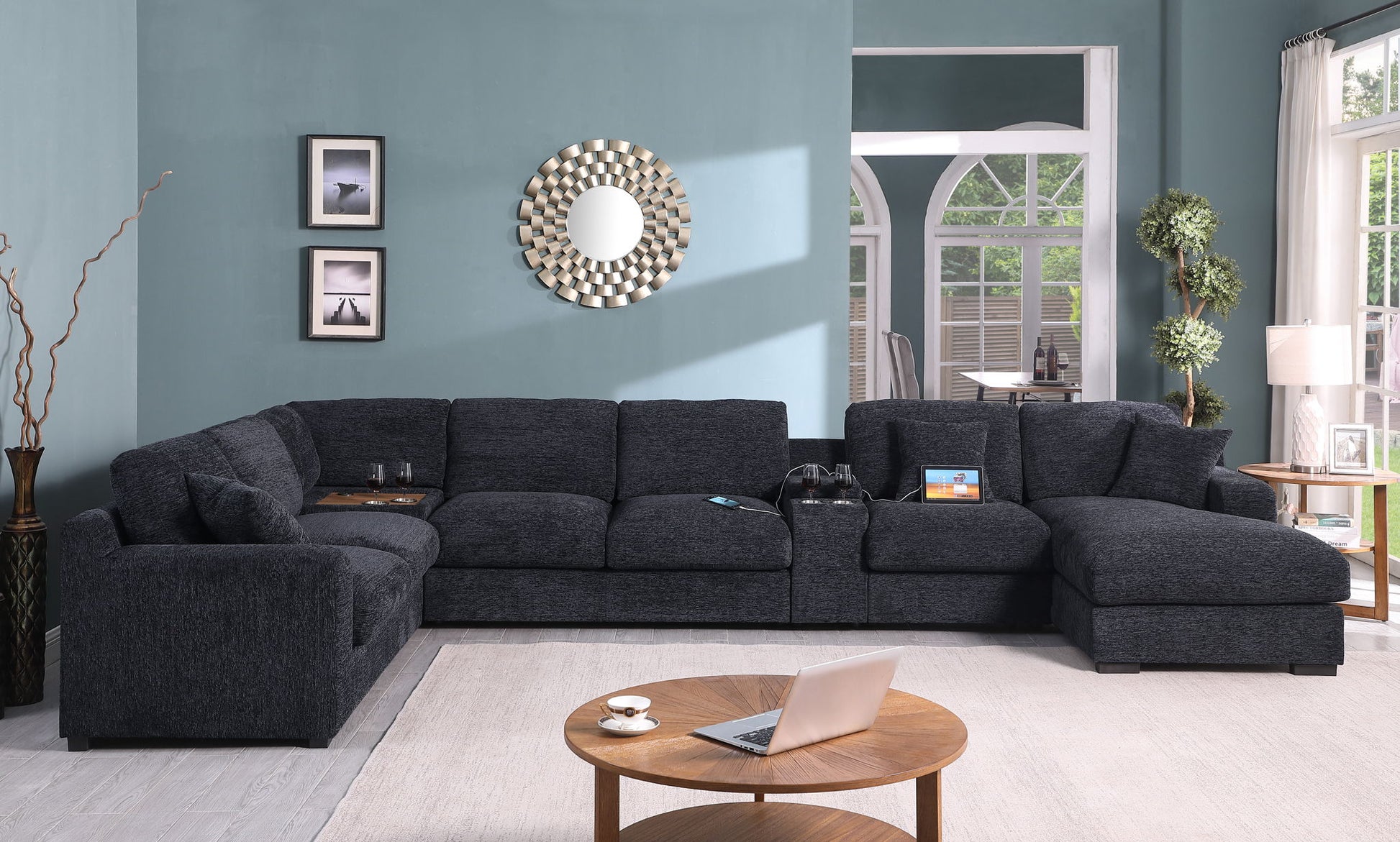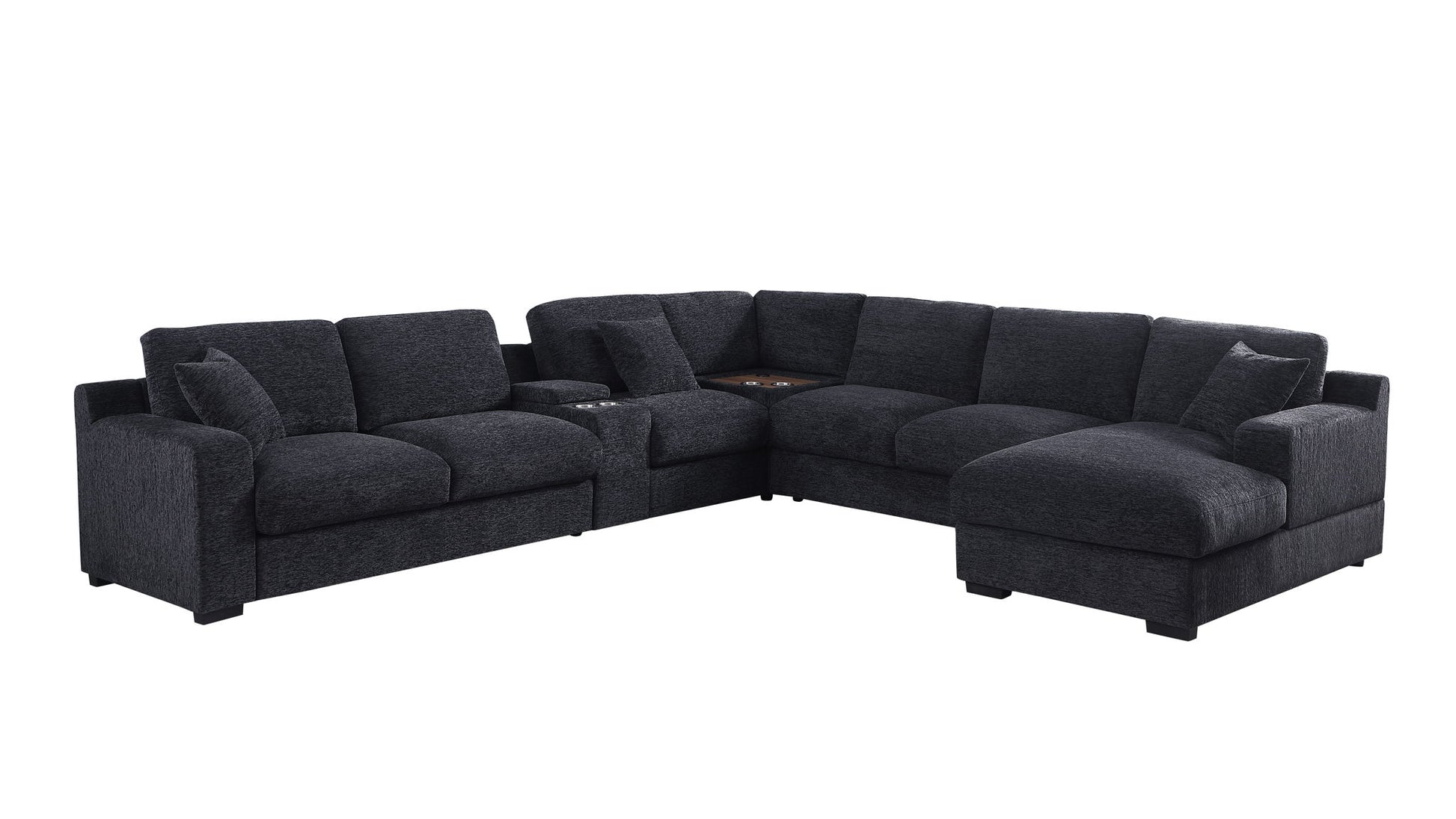 Celine - Chenille Fabric Corner Sectional Sofa With Right Facing Chaise, Cupholders, And Charging Ports - Dark Gray