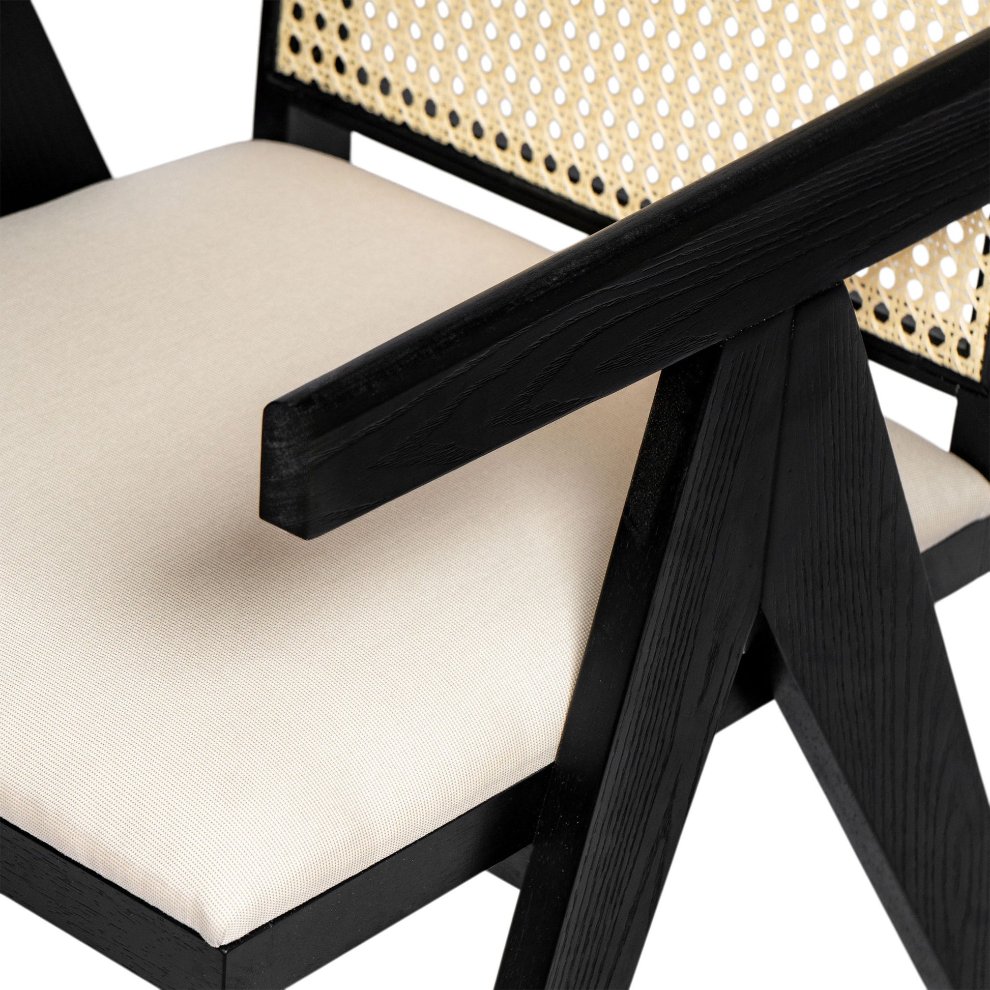 Chandigarh - Farmhouse Style Cane Upholstered Dining Chairs (Set of 2) - Black / Natural