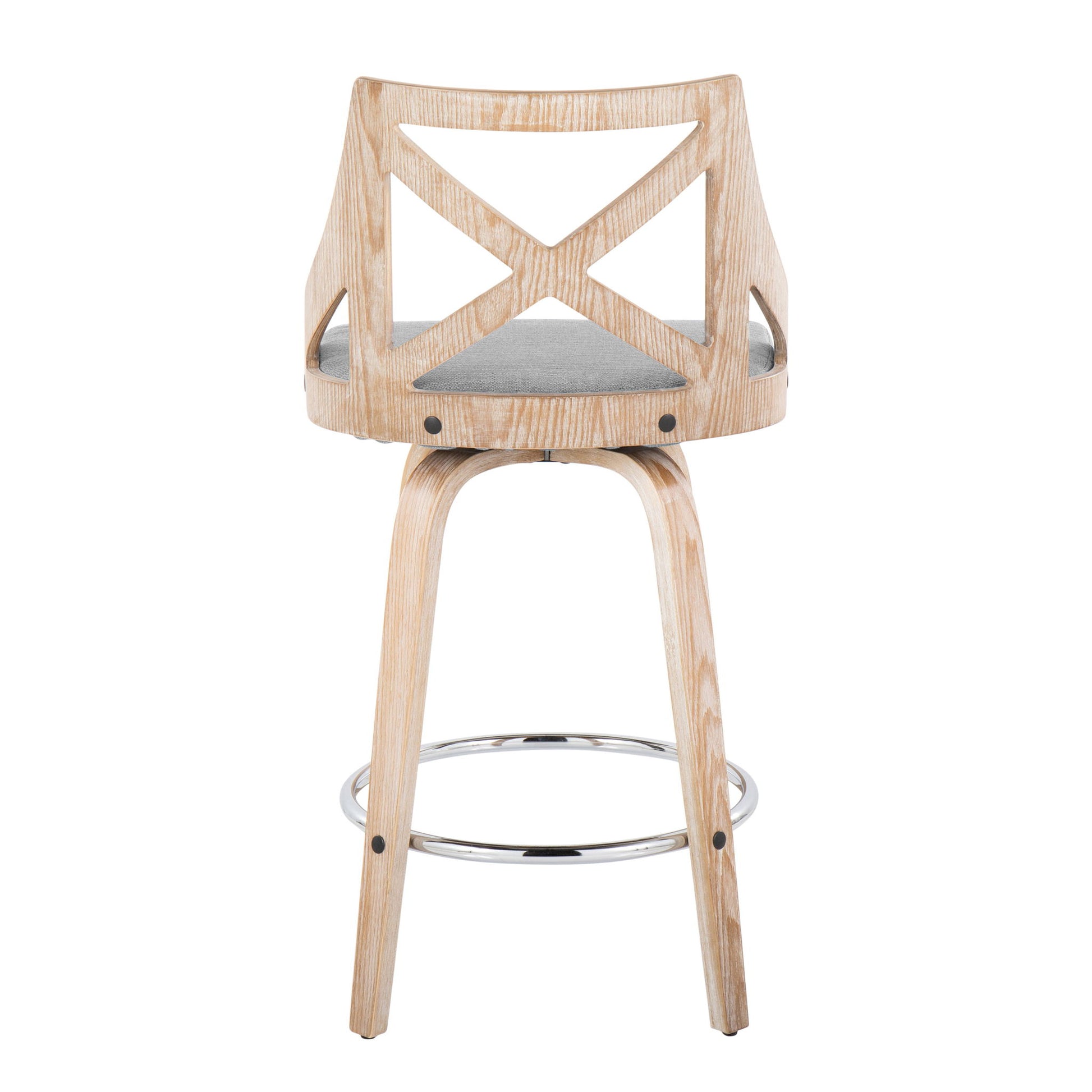 Charlotte - Farmhouse Fixed Height Counter Stool With Swivel With Round Footrest (Set of 2) - White Washed / Light Gray