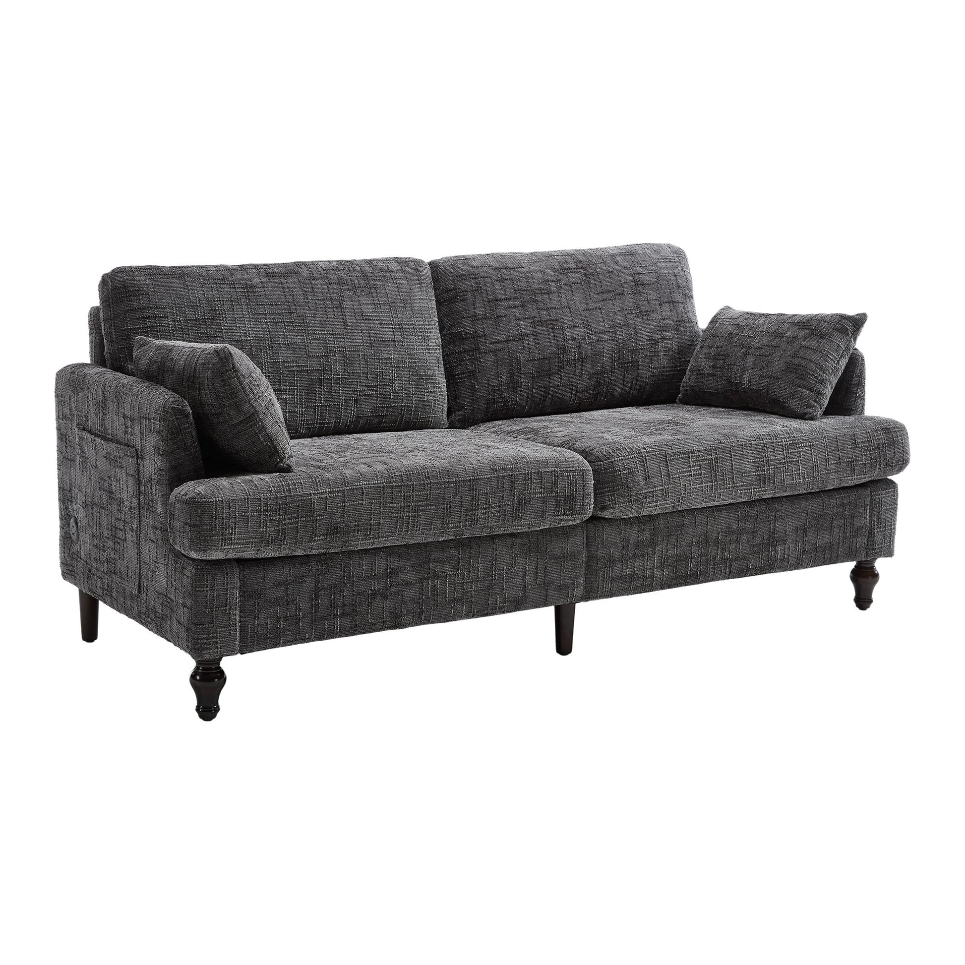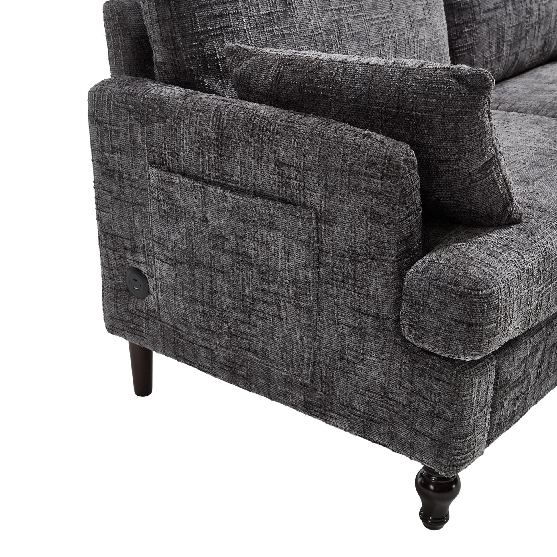 Modern Style Chenille 2 Seater Sofa With LED Light, USB Port, And Storage Bag - Gray