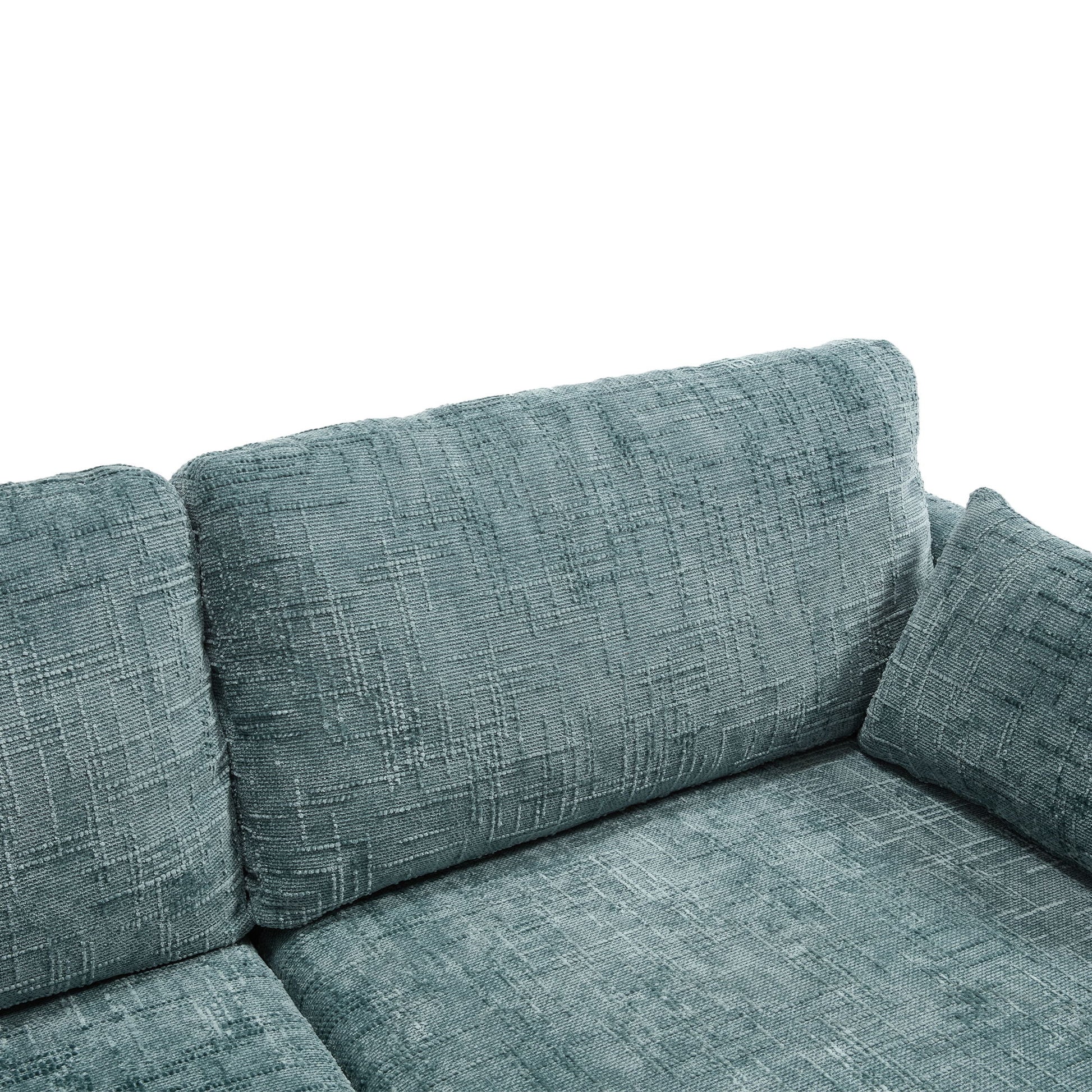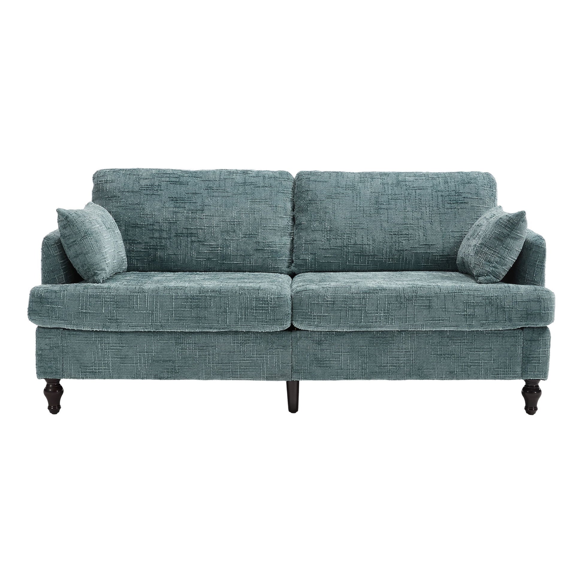 Modern Style Chenille 2 Seater Wood Legged Sofa With LED Light, USB Charging Port And Storage Bag - Lake Blue