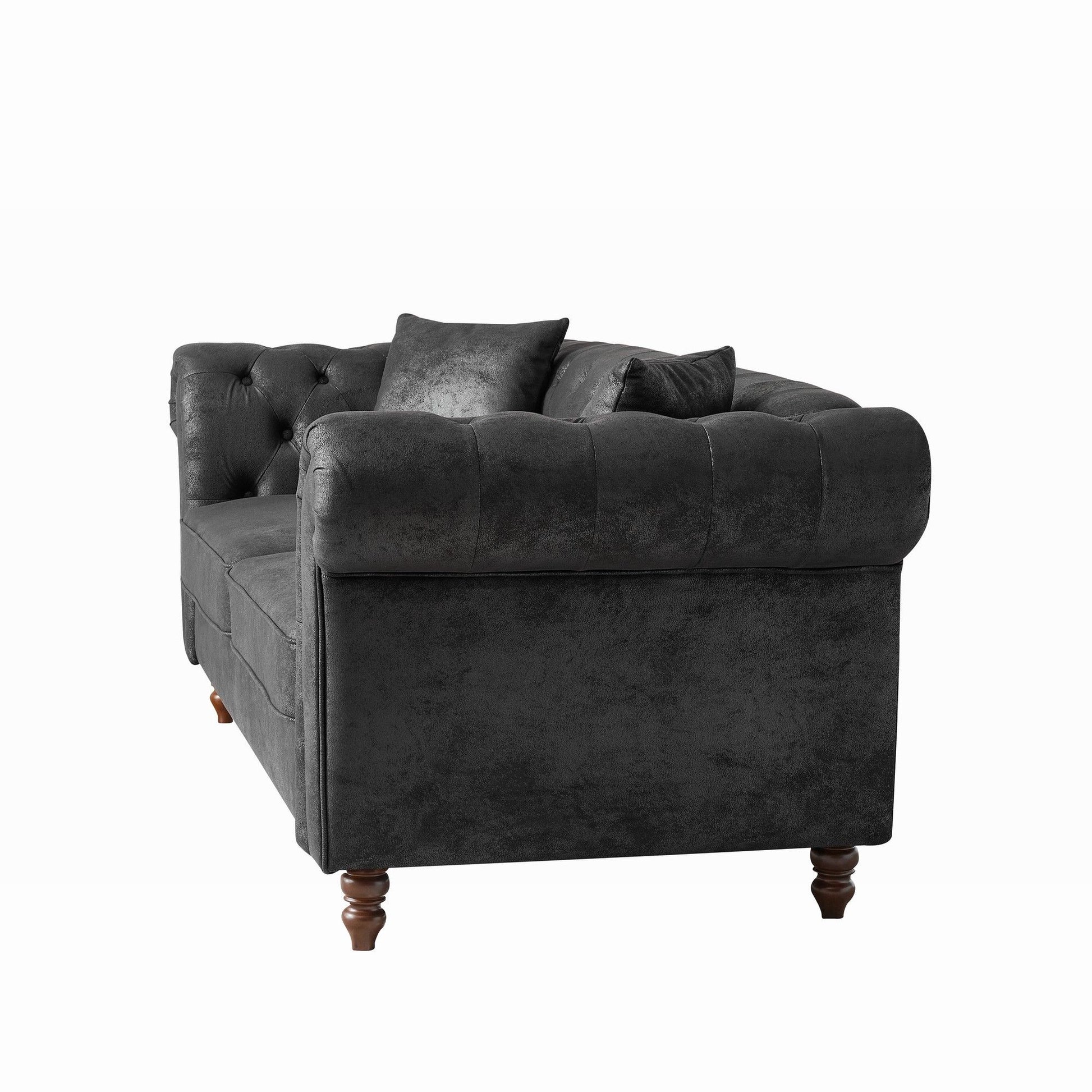 Chesterfield 3 And 3 Seater Sofa Set High Tech Fabric Roll Armrest Upholstered Couch