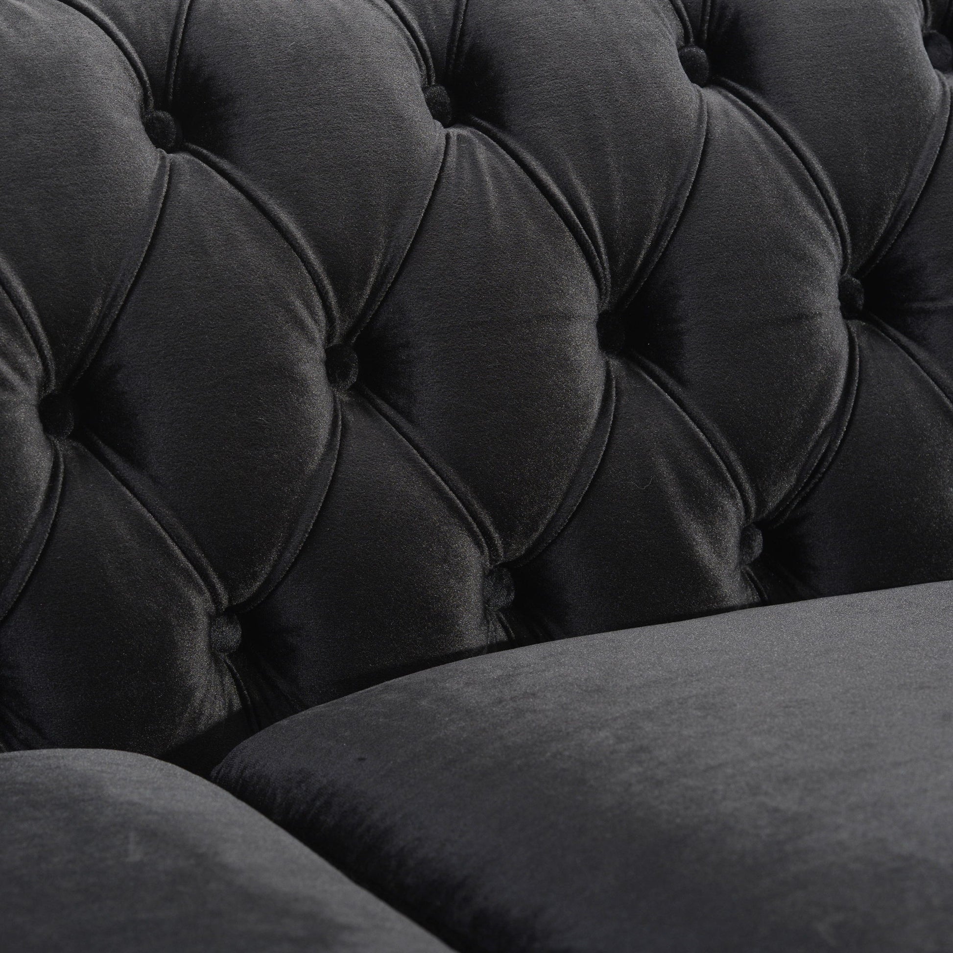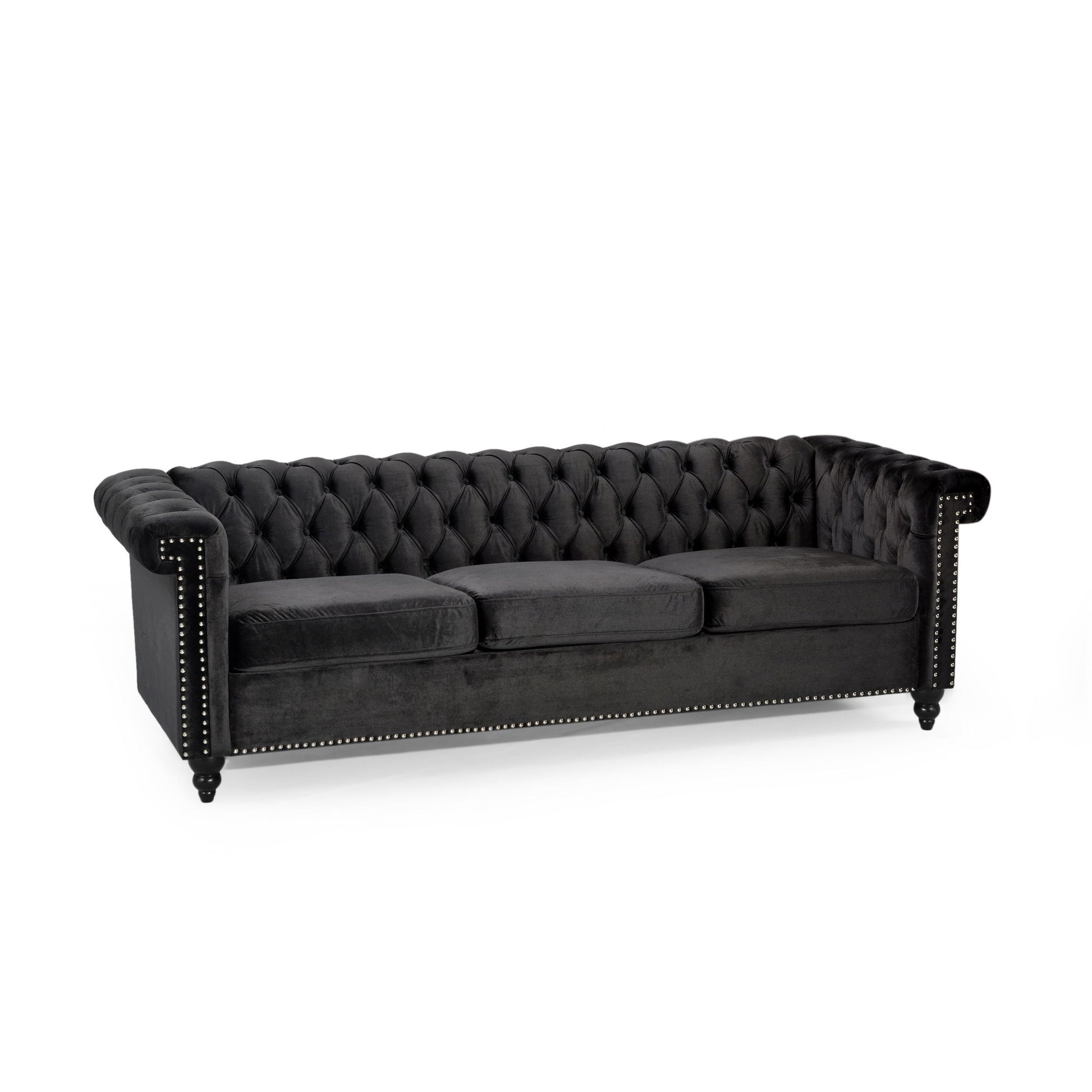 Chesterfield Style 3 Seater Sofa With Deep Button Tufting - Black