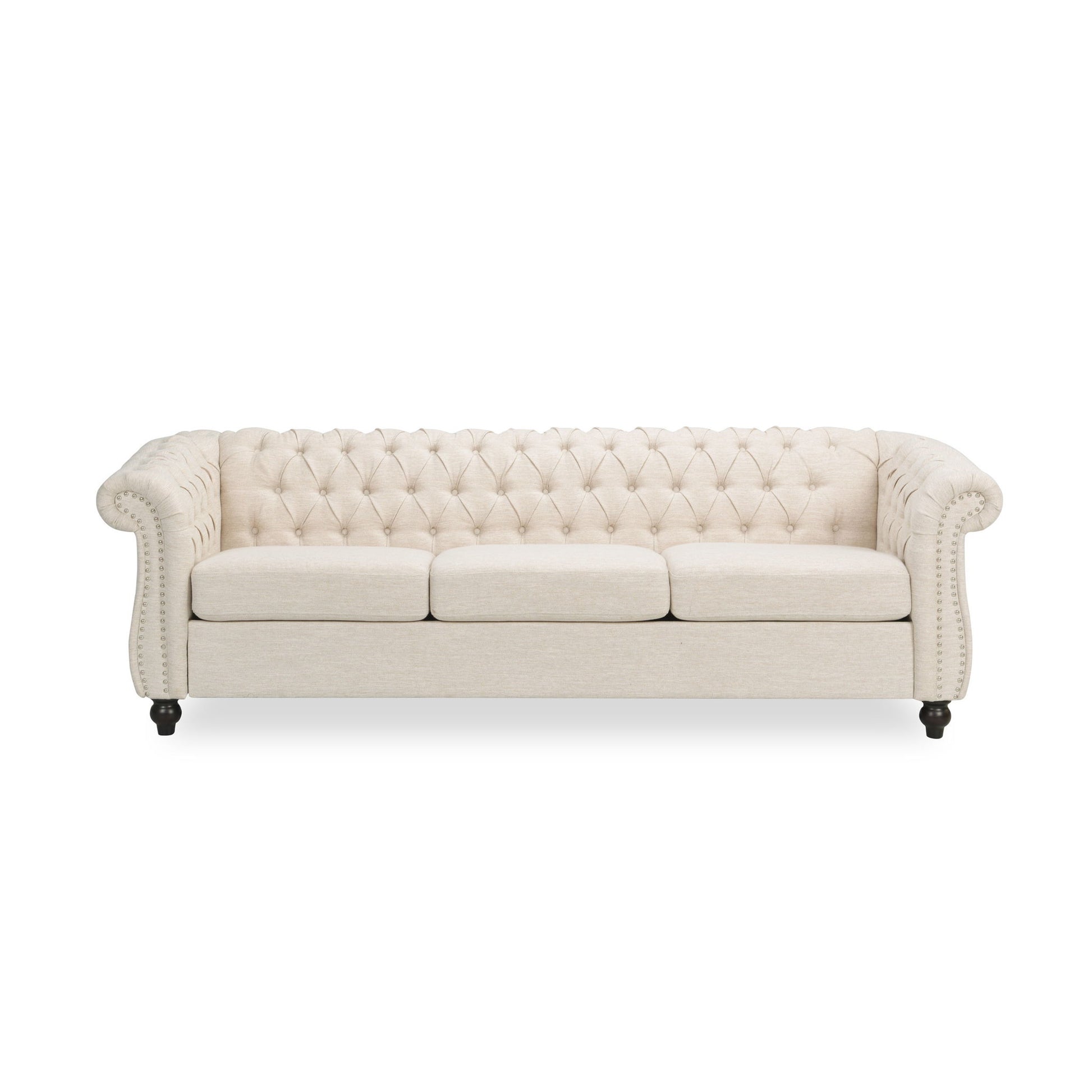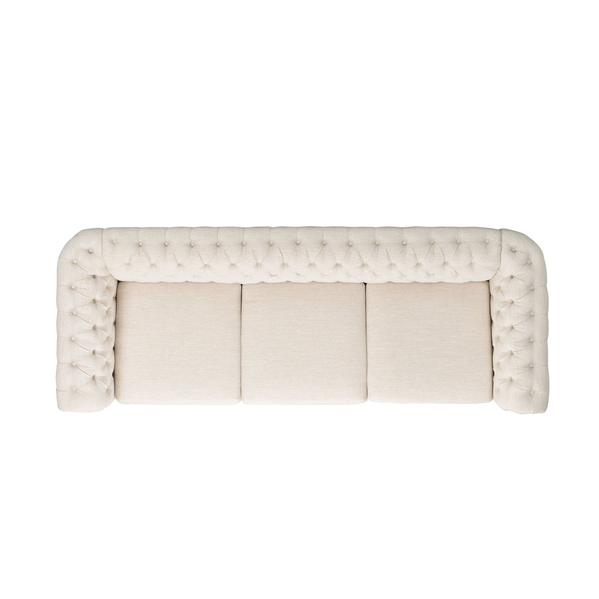 Chesterfield Style 3 Seater Sofa With Deep Button Tufting - Beige