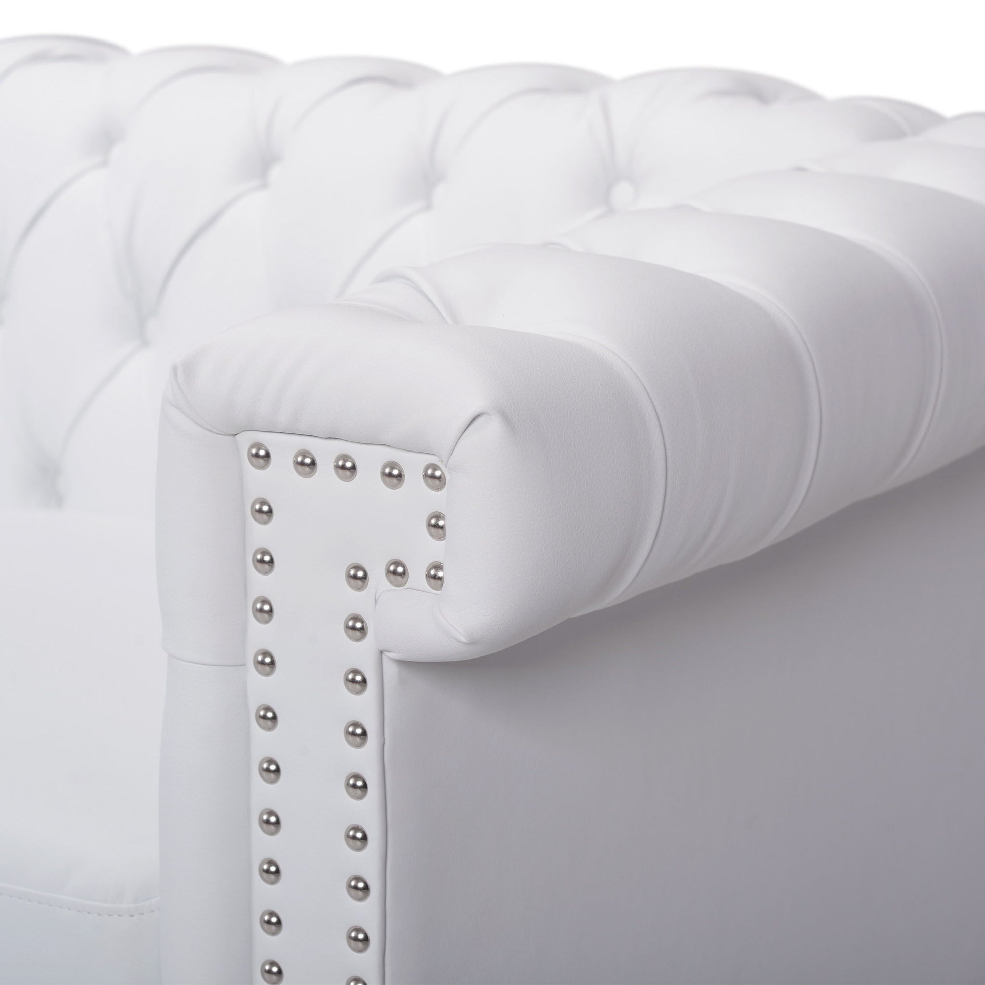 Chesterfield Style 3 Seater Sofa With Button Tufting And Nail Head Accents - White
