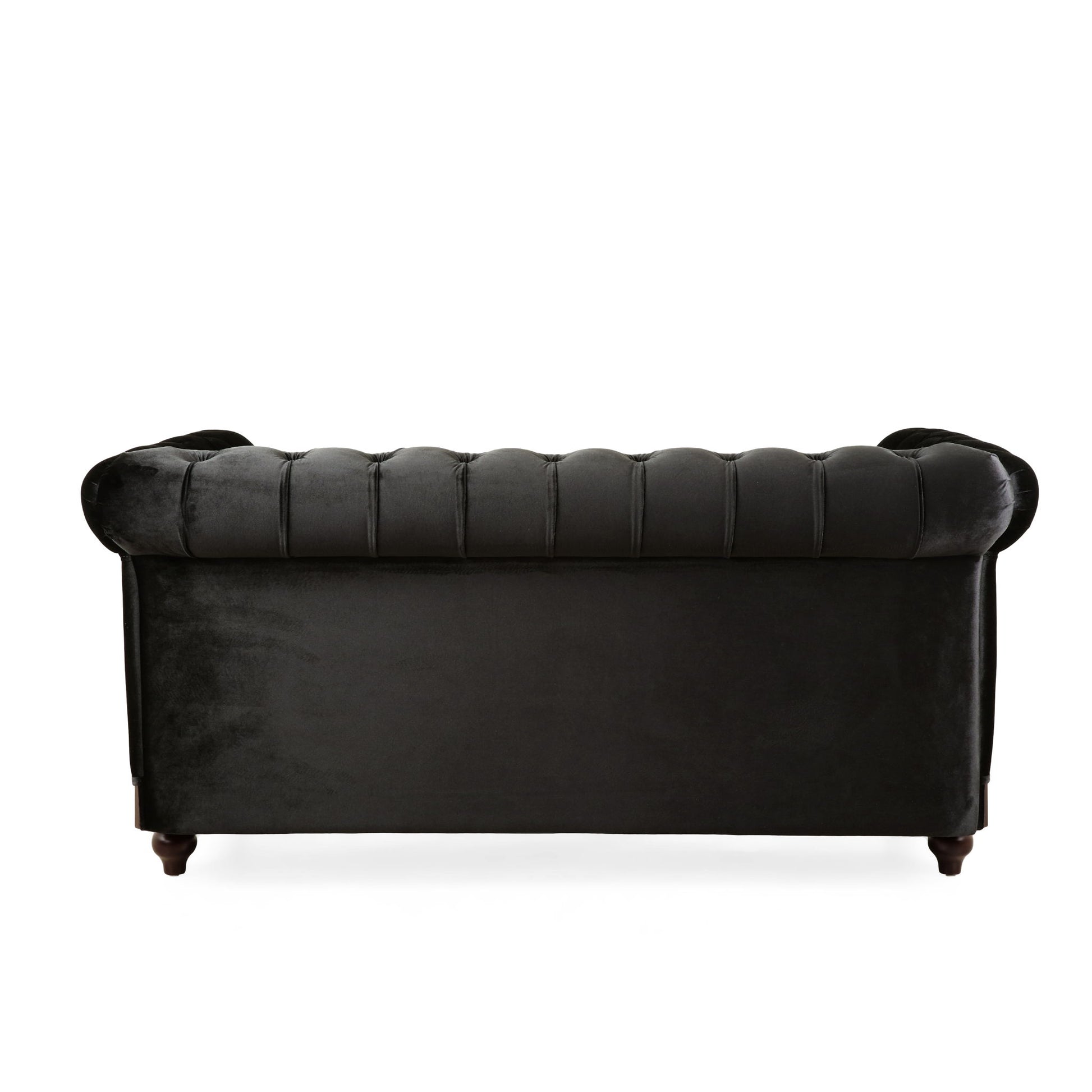 Chesterfield Velvet Loveseat Sofa, 2 Person Rolled Arm Upholstered Couch - Black