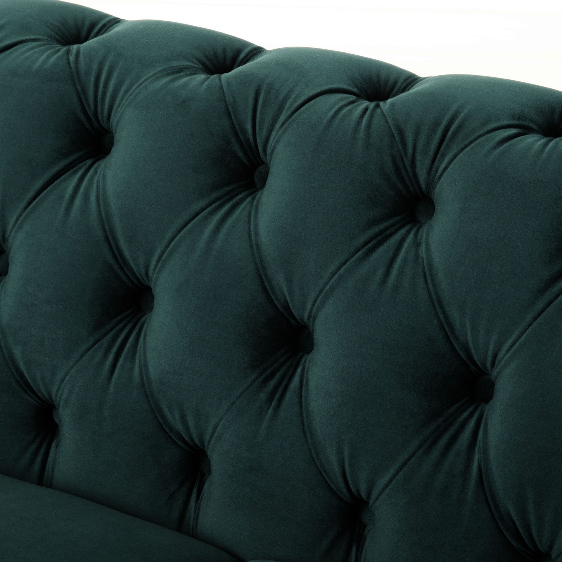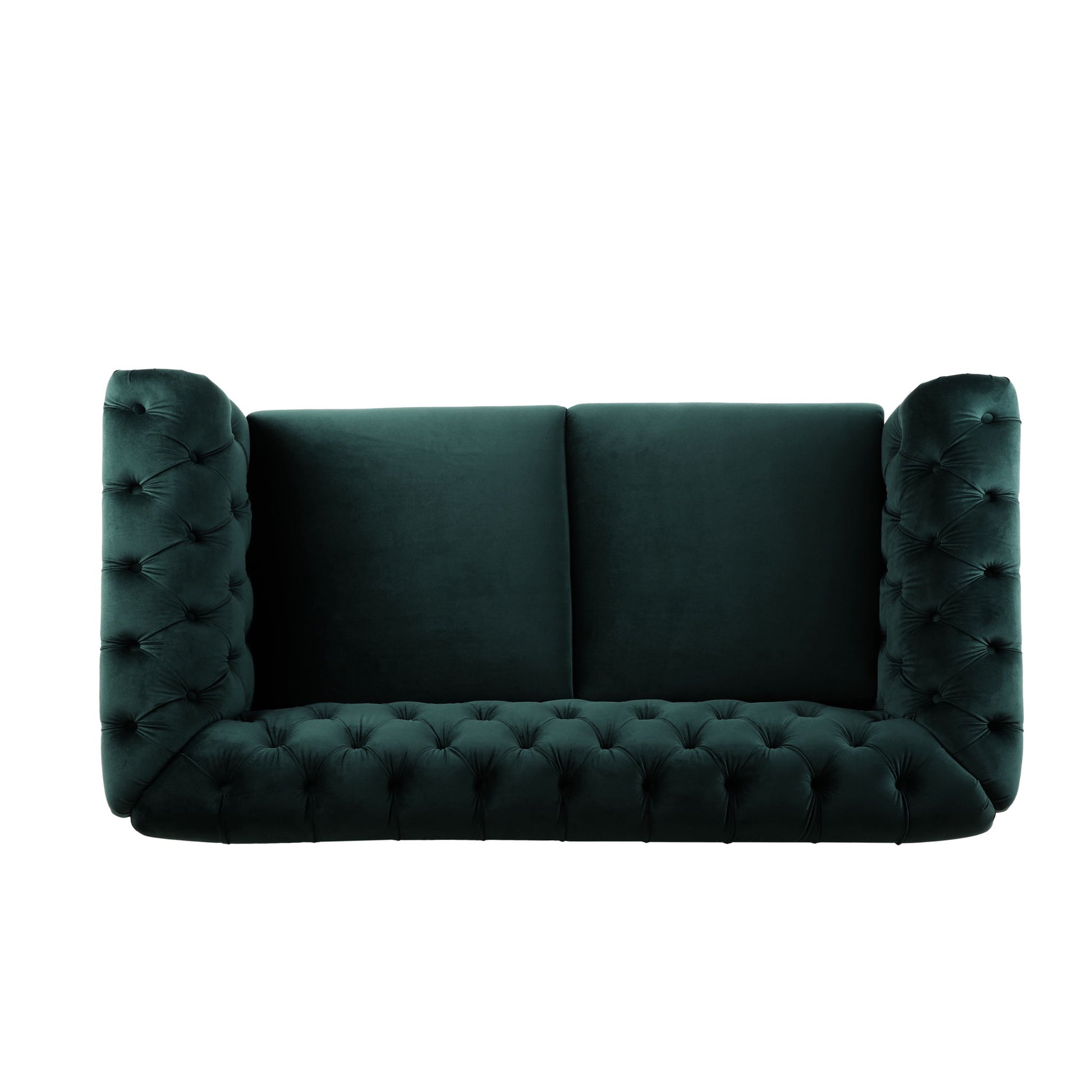 Chesterfield Velvet Loveseat Sofa 2 Person Rolled Arm Upholstered Couch - Forest Green
