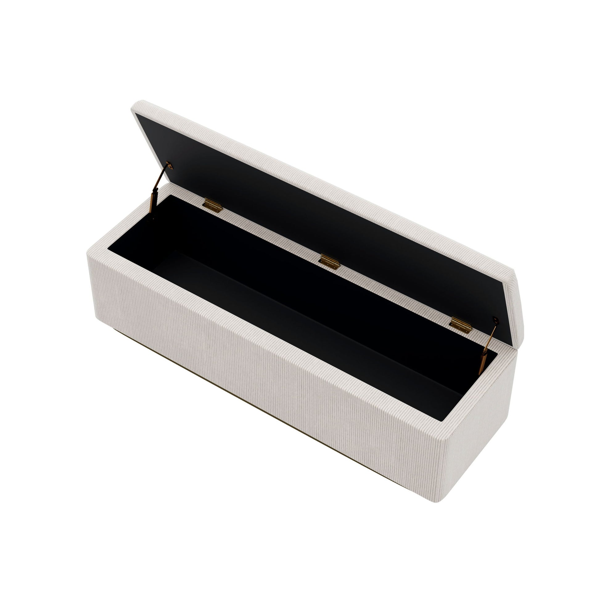 Chic Corduroy Upholstered Storage Ottoman With Vertical Stripe Design - Light Gray