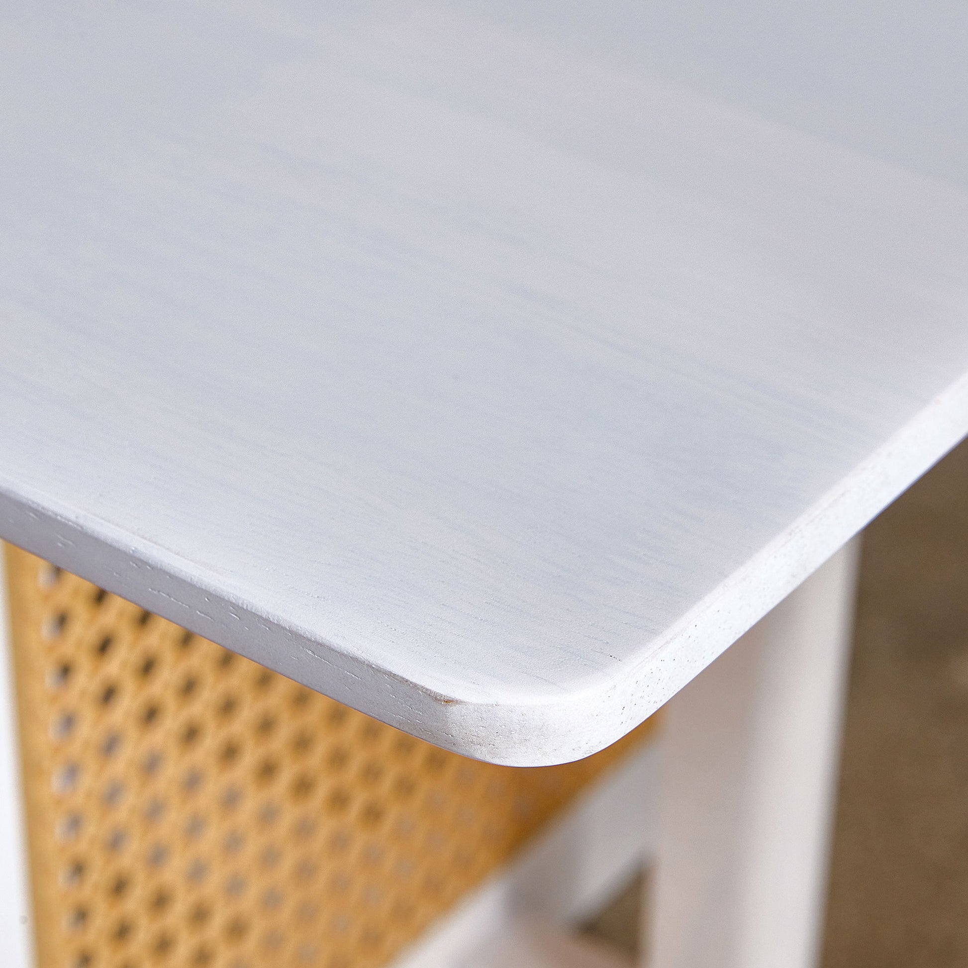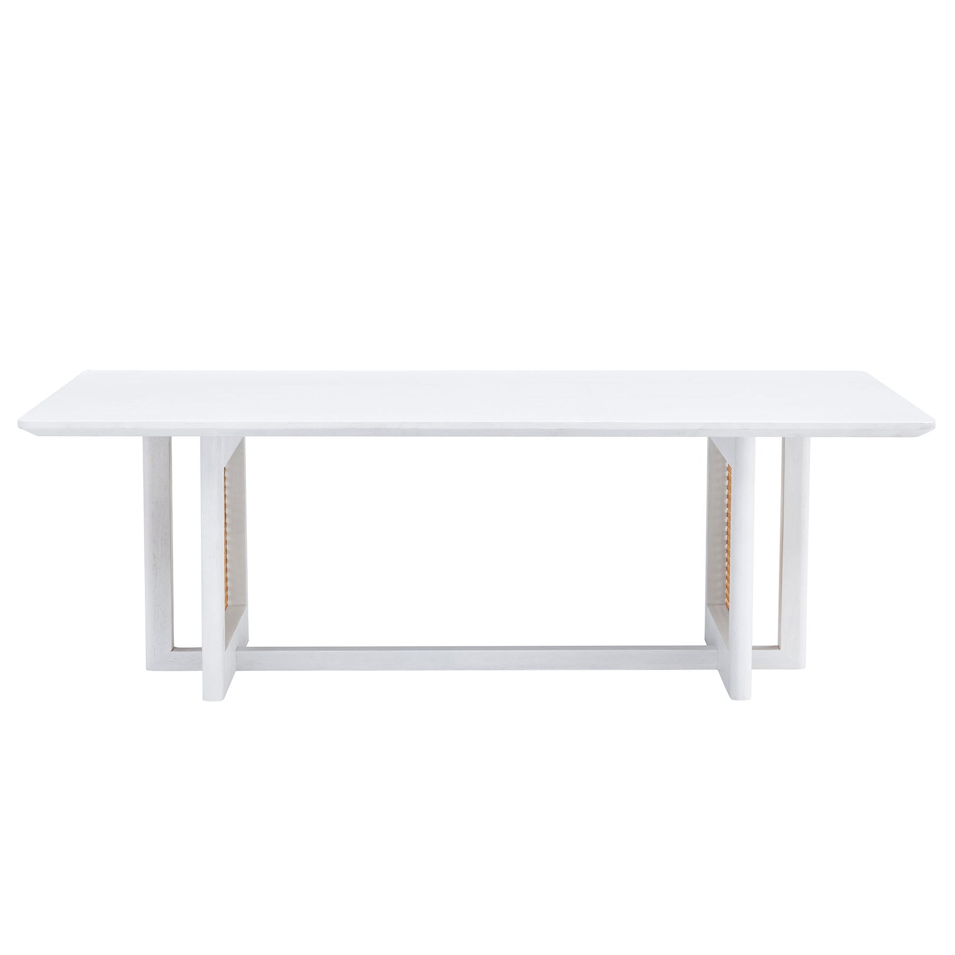 Chinese Style White Solid Wood And Imitation Rattan Coffee Table