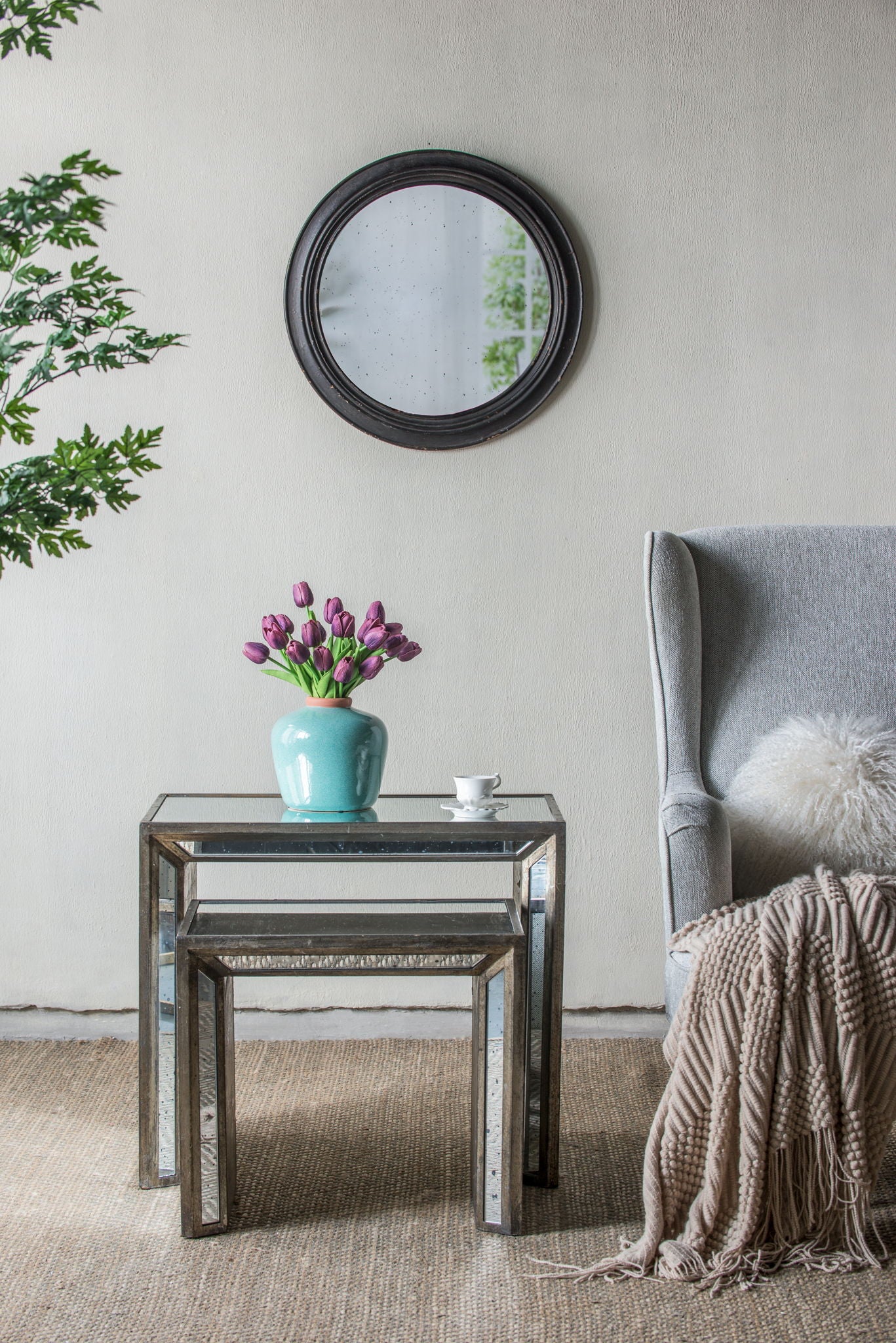 Circle Wall Mirror With Wooden Frame, Antique Classic Accent Mirror, For Living Room - Black