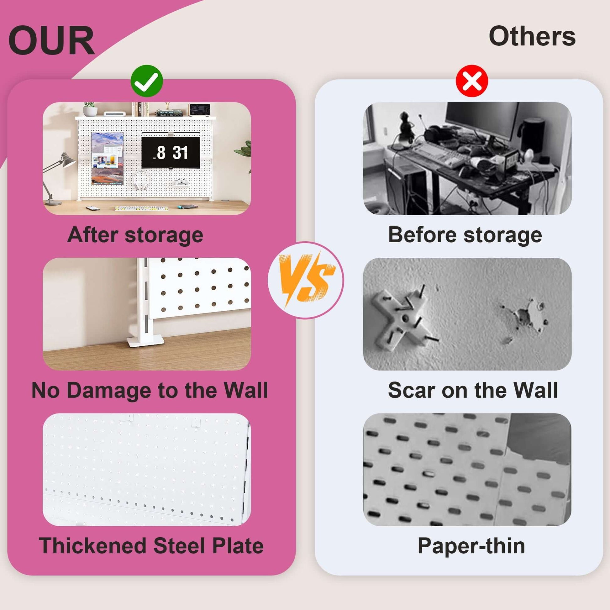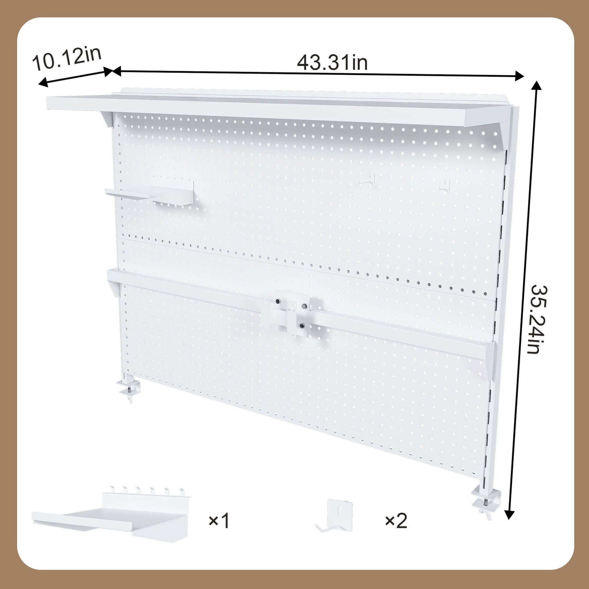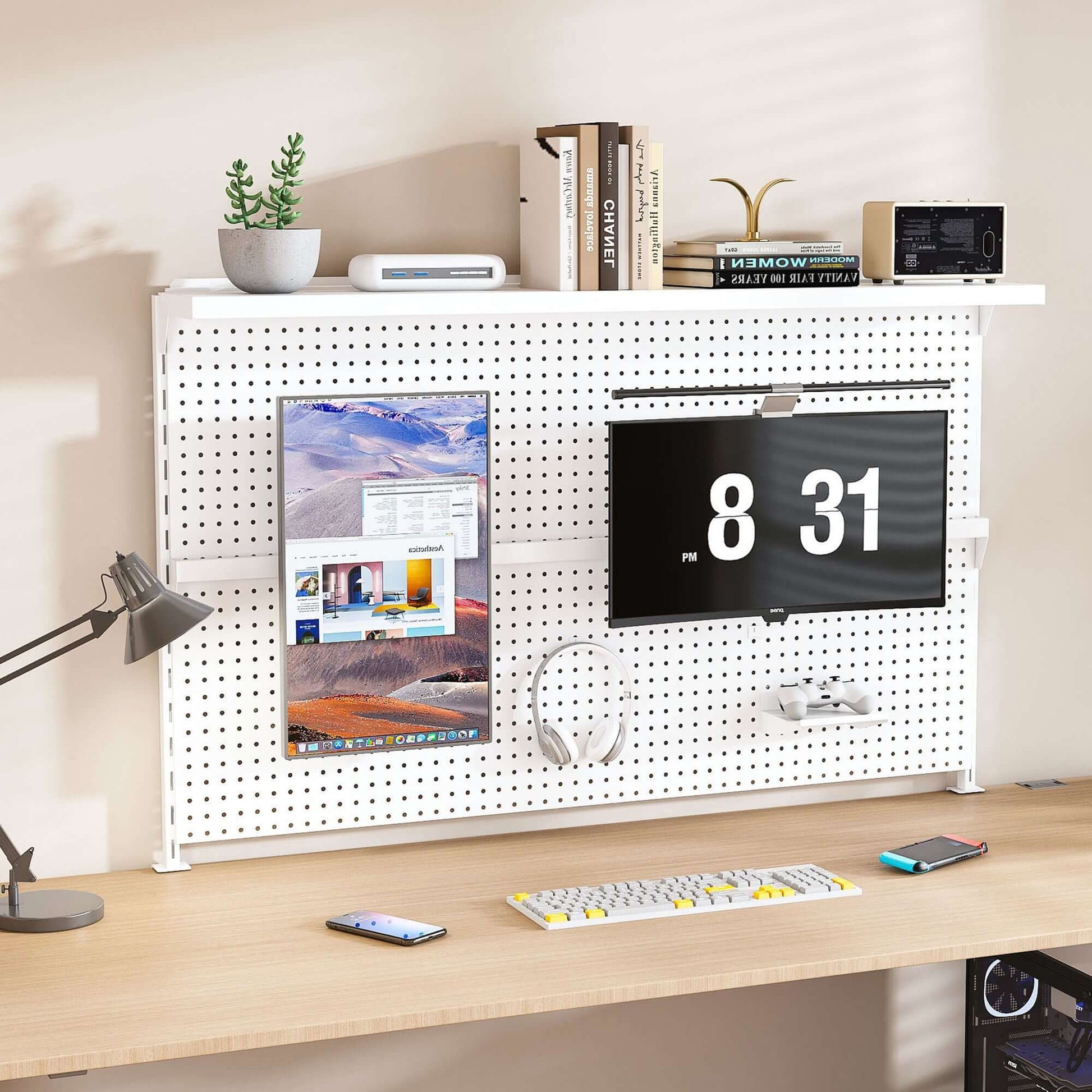 Pegboard Desk Organizer With Dual Monitor Stand, 3 Accessories - White