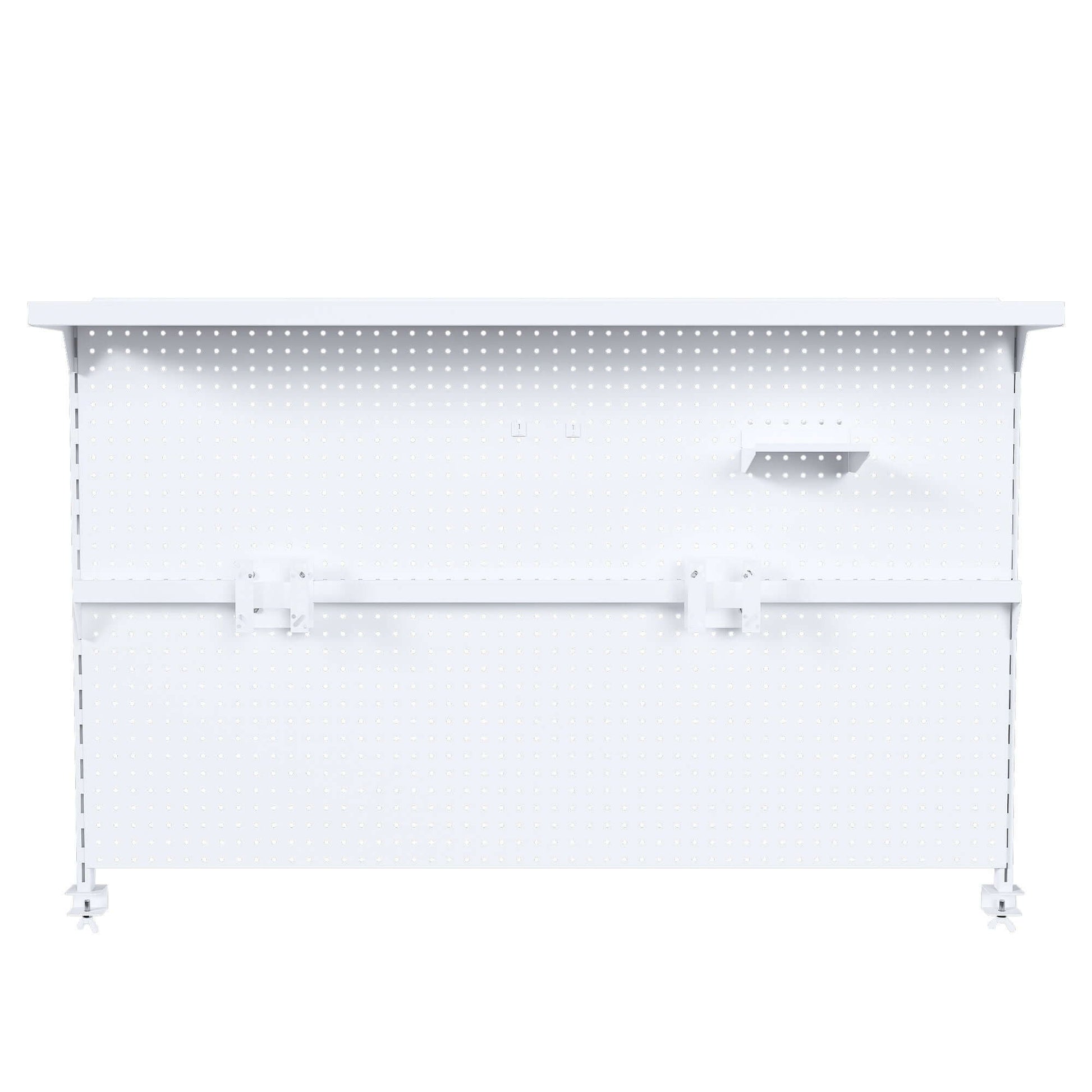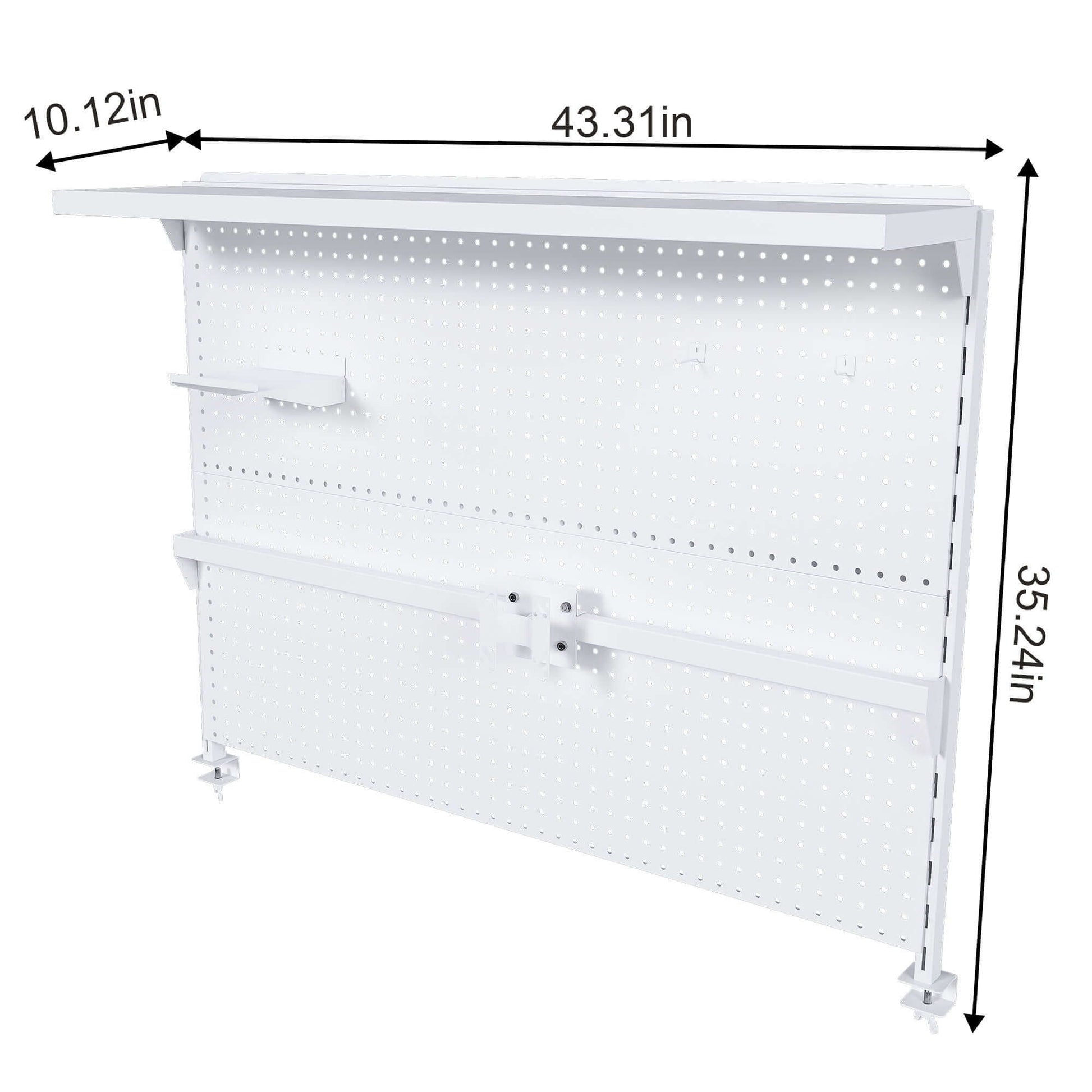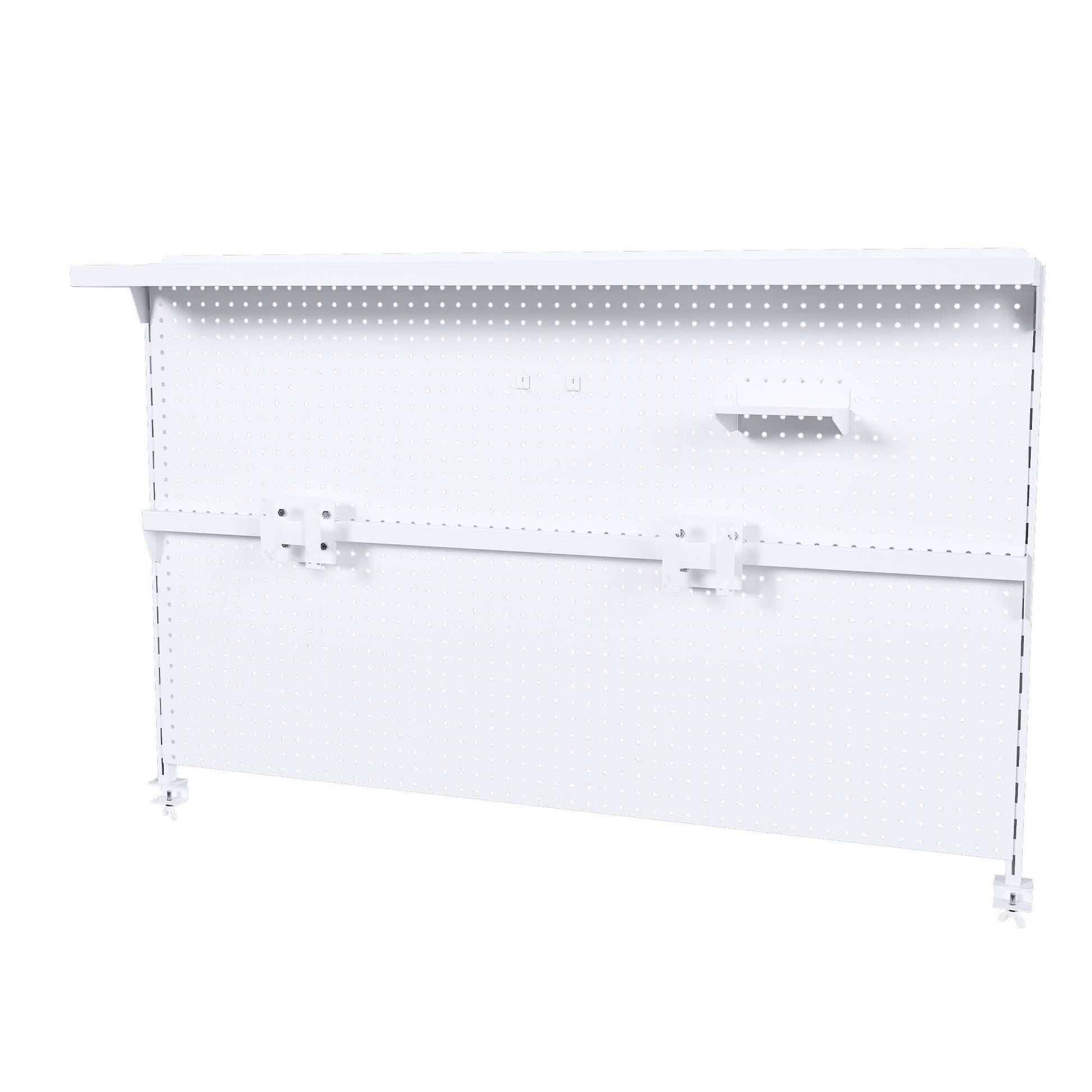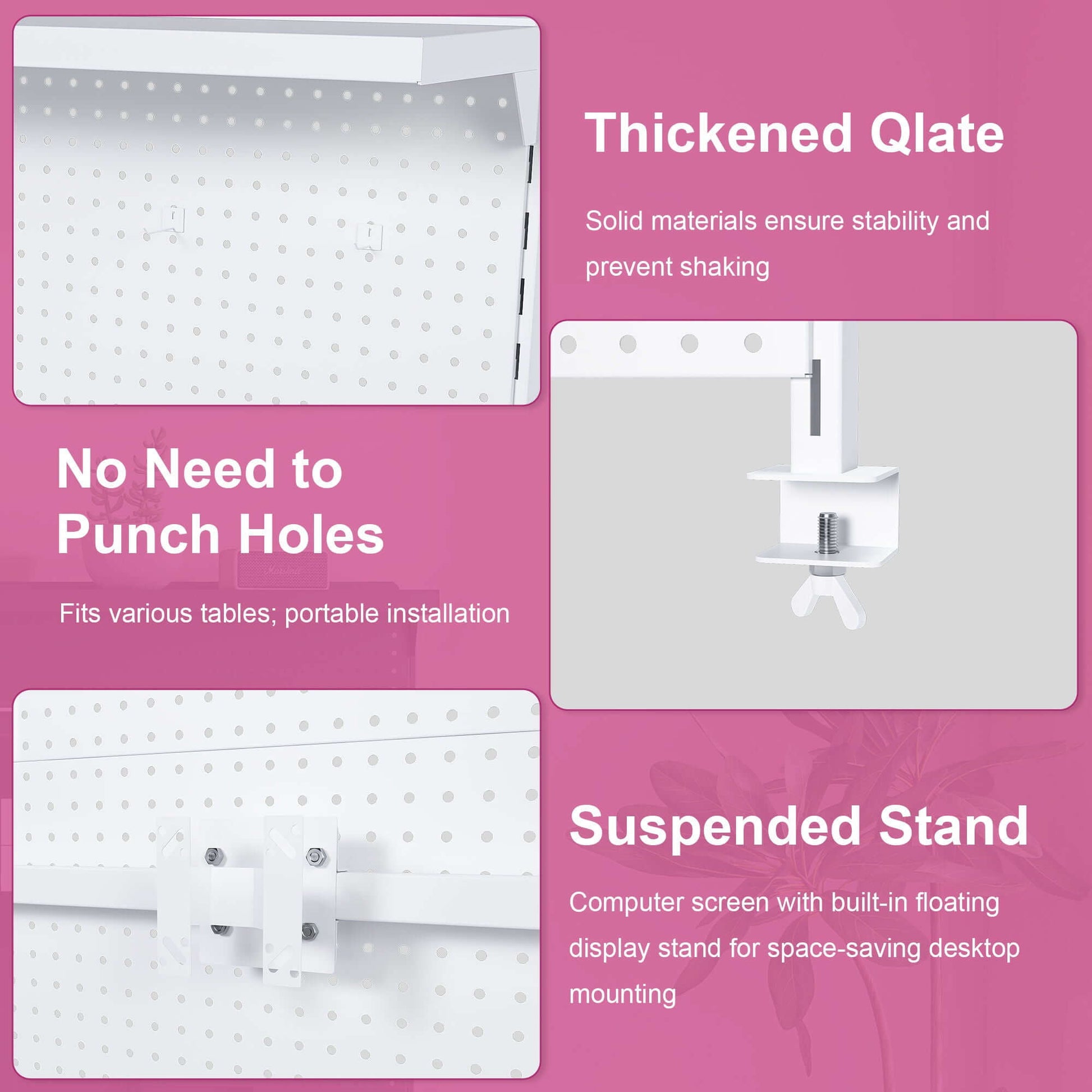 Clamp On Desk Pegboard With Single Monitor Stand, Organizer With Hooks & Movable Panel - White