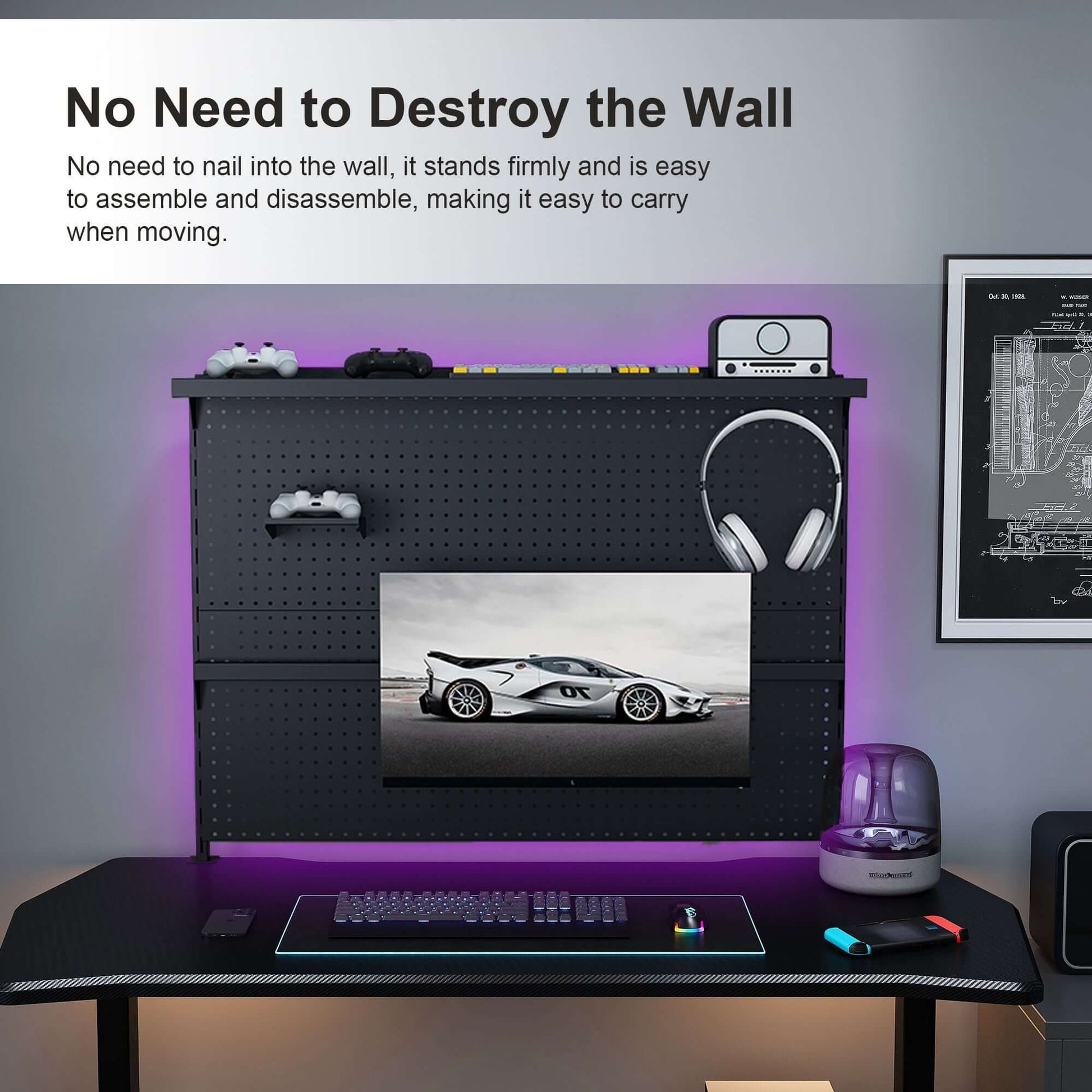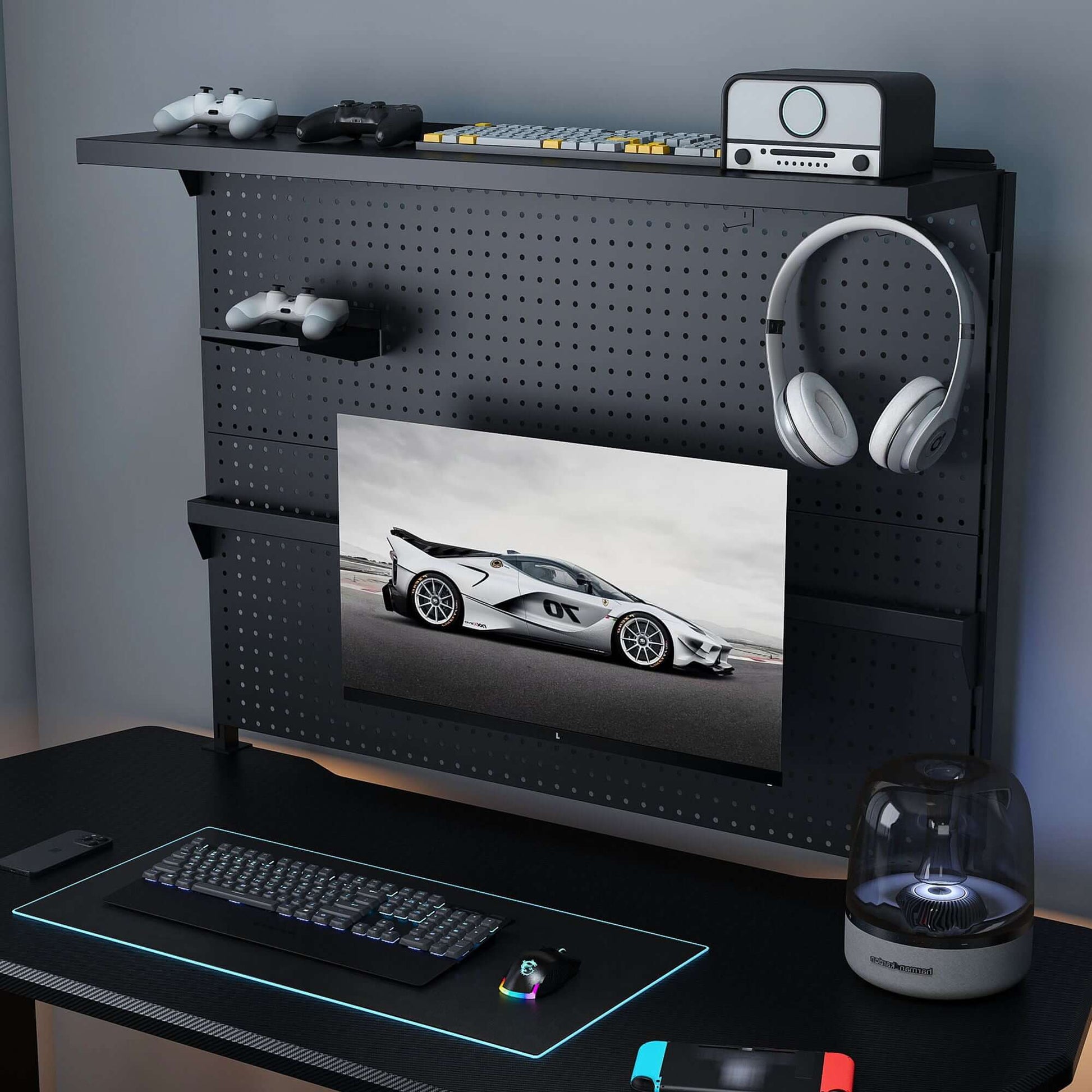 Clamp On Desk Pegboard With Single Monitor Stand - Black