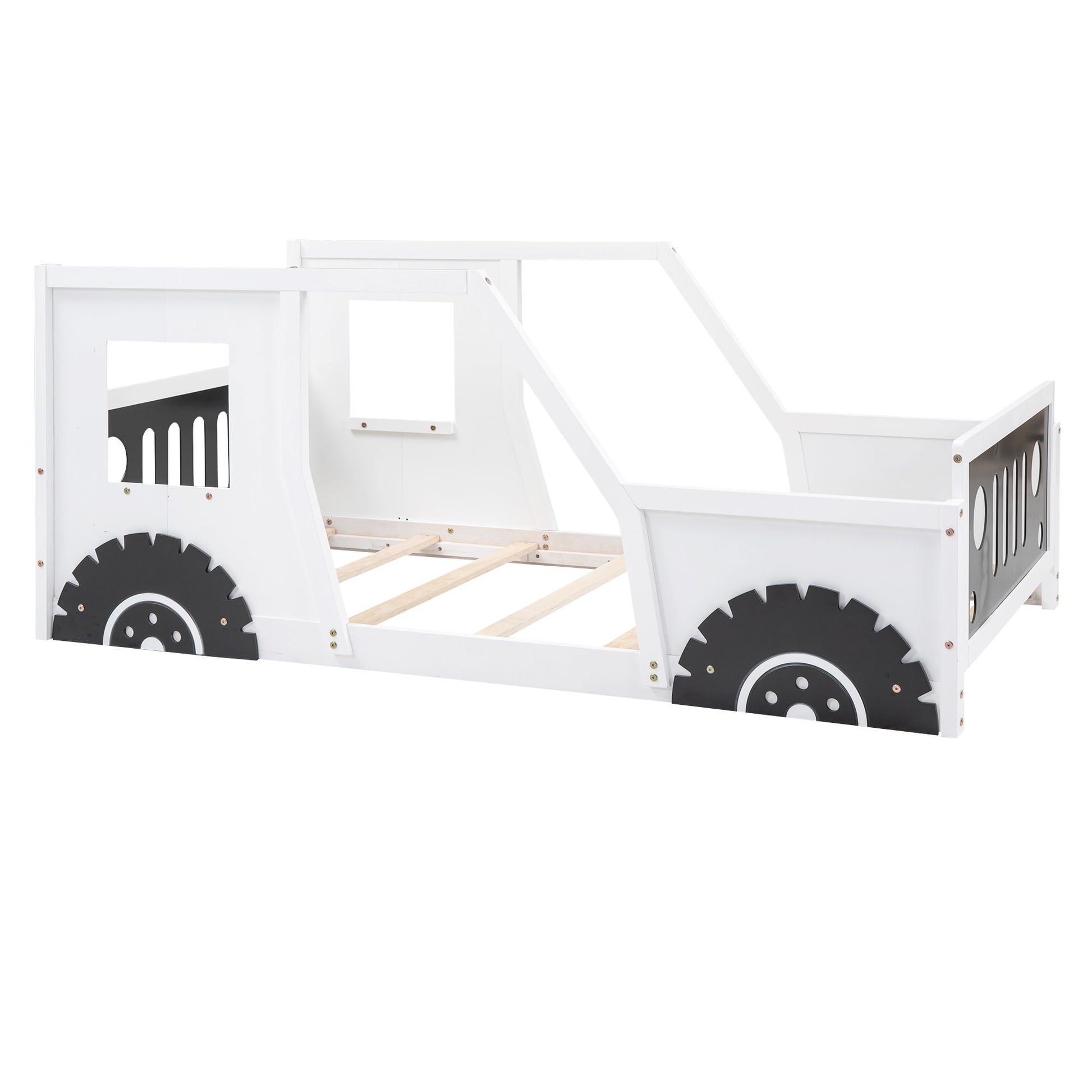 - Car Bed Design: Headboard and footboard shaped like a car with two doors and windows on each side for an authentic look
