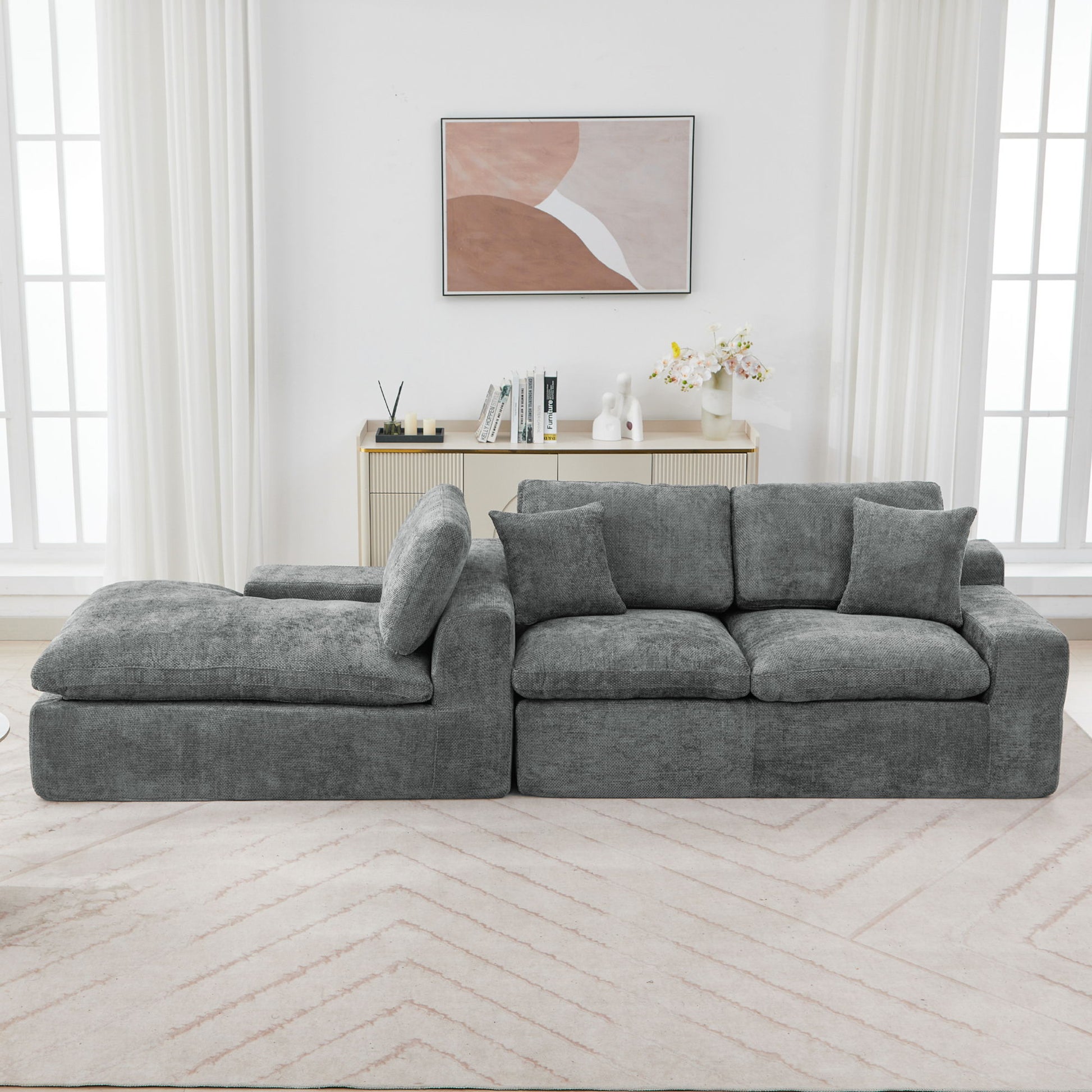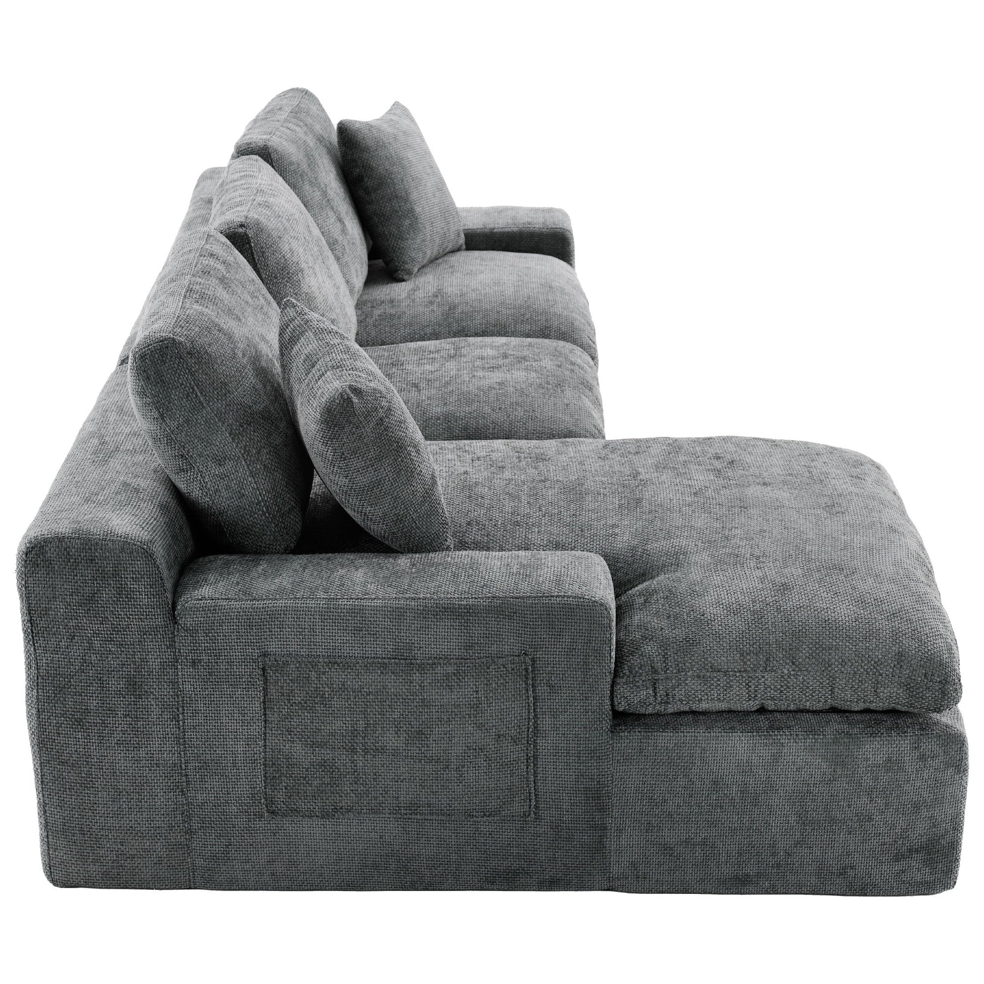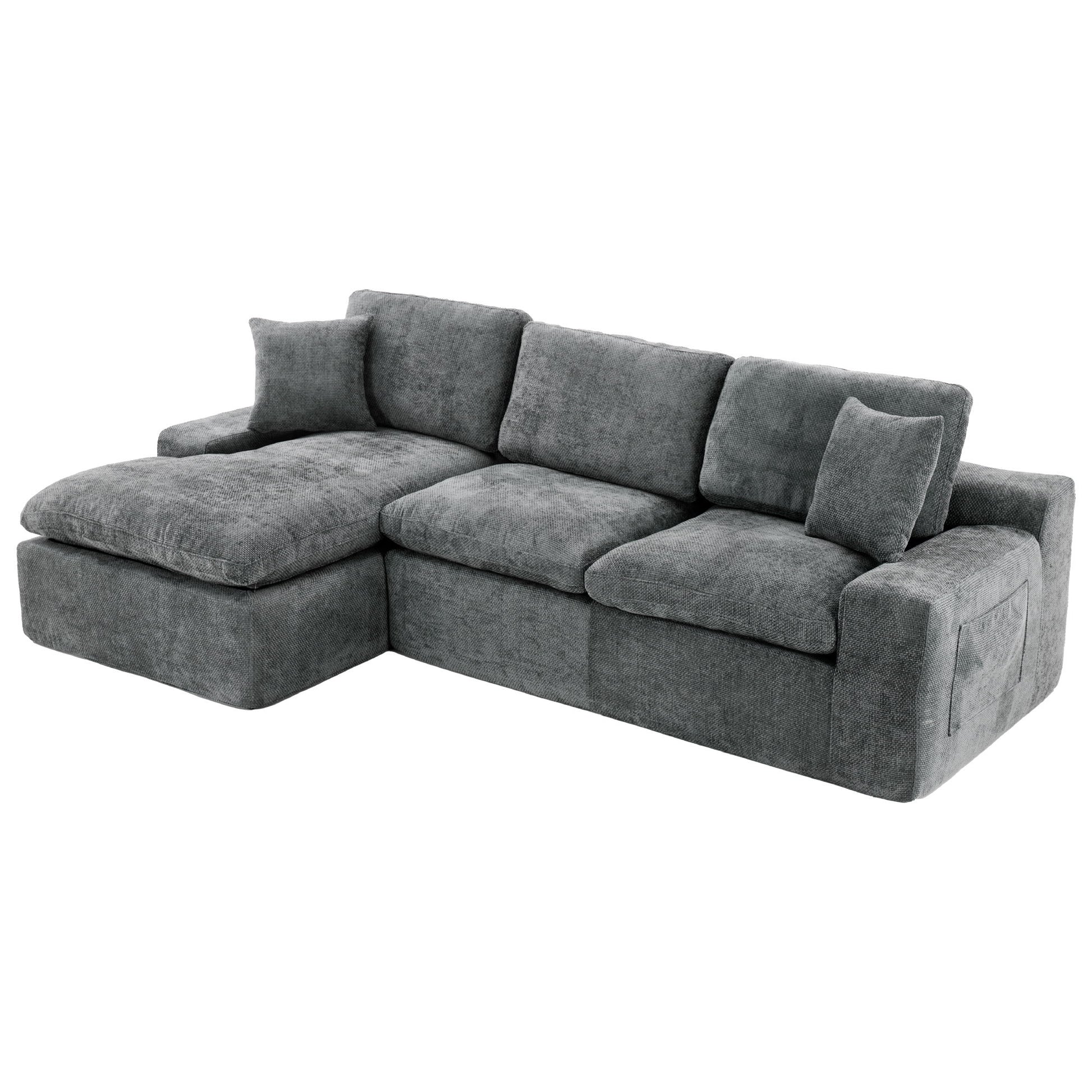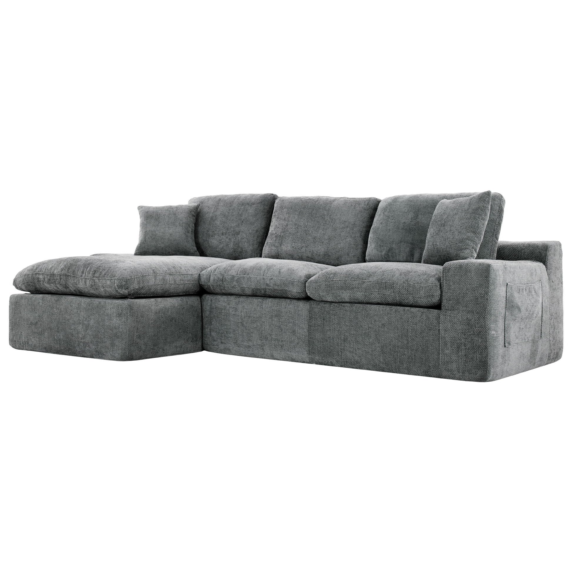 Cloud Sectional Sofa Upholstered Sofa Couch With Double-Layer Cushion And Side Pockets, Free Combined Sectional Sofa Full Compressed Sofa For Living Room - Gray