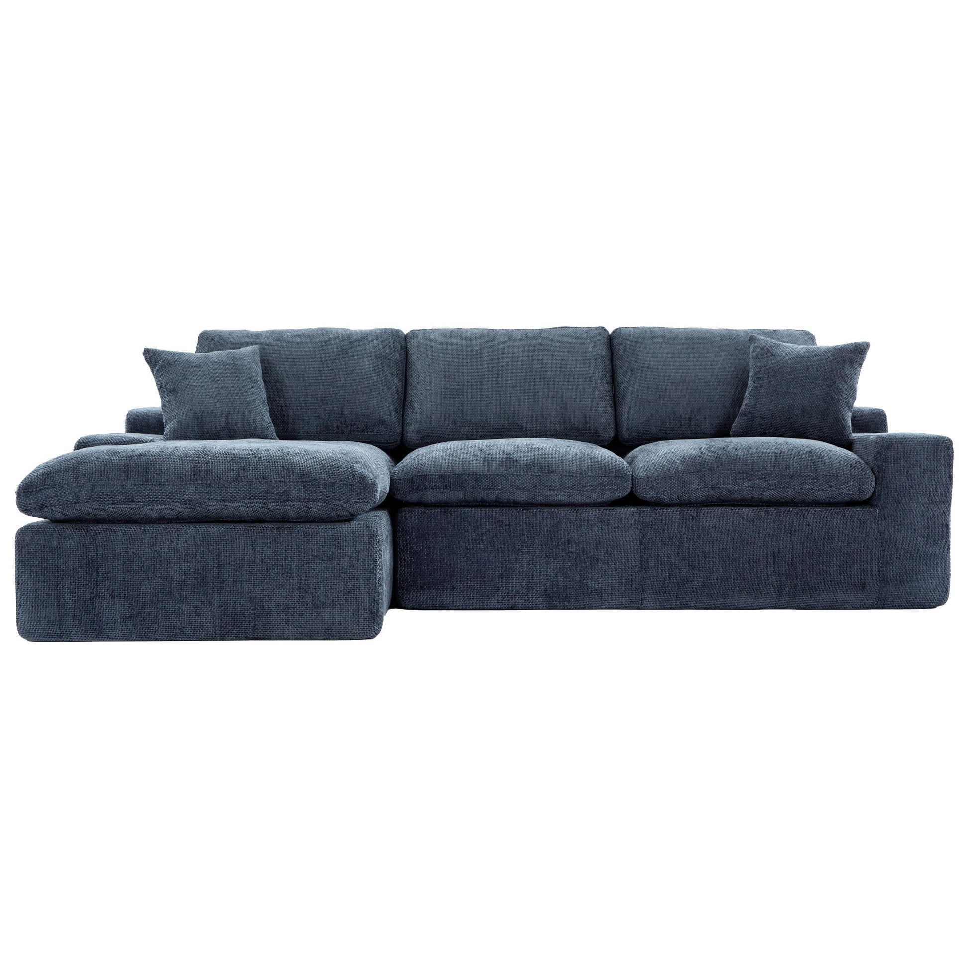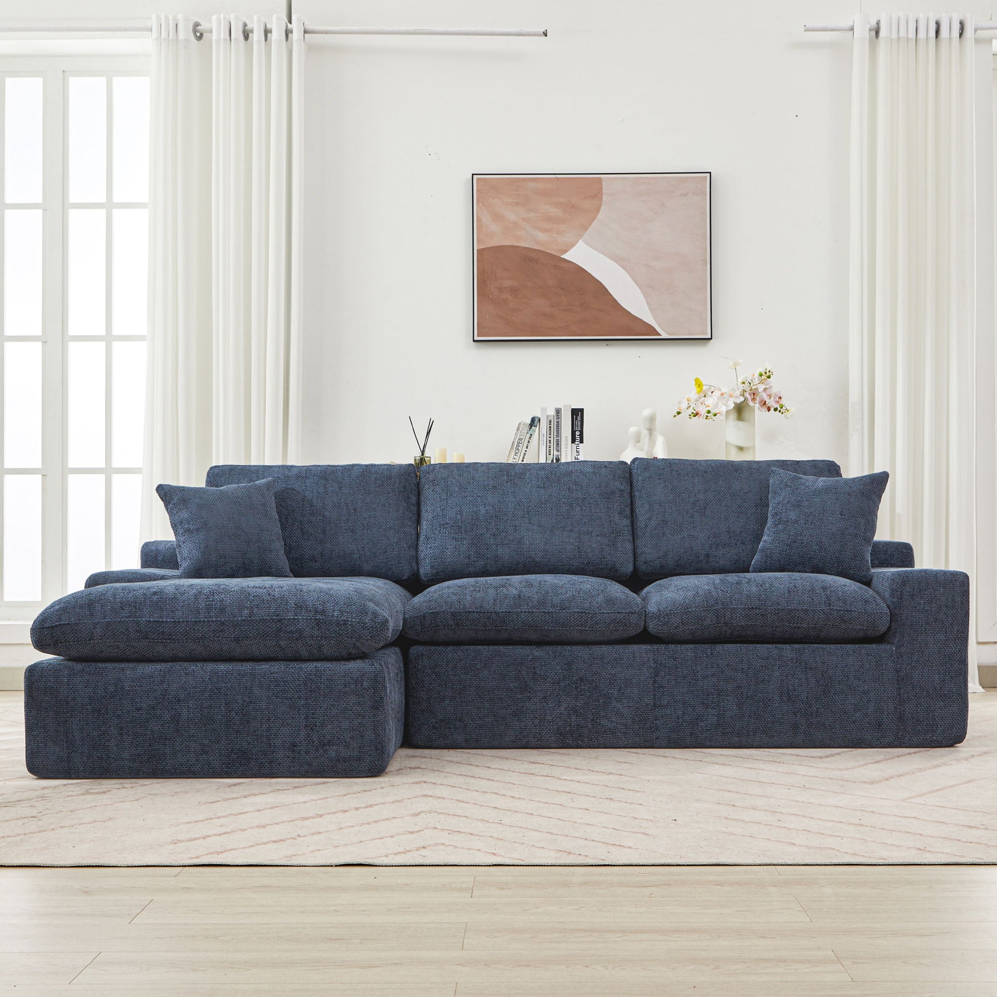 Cloud Sectional Sofa Upholstered Sofa Couch With Double-Layer Cushion And Side Pockets - Blue