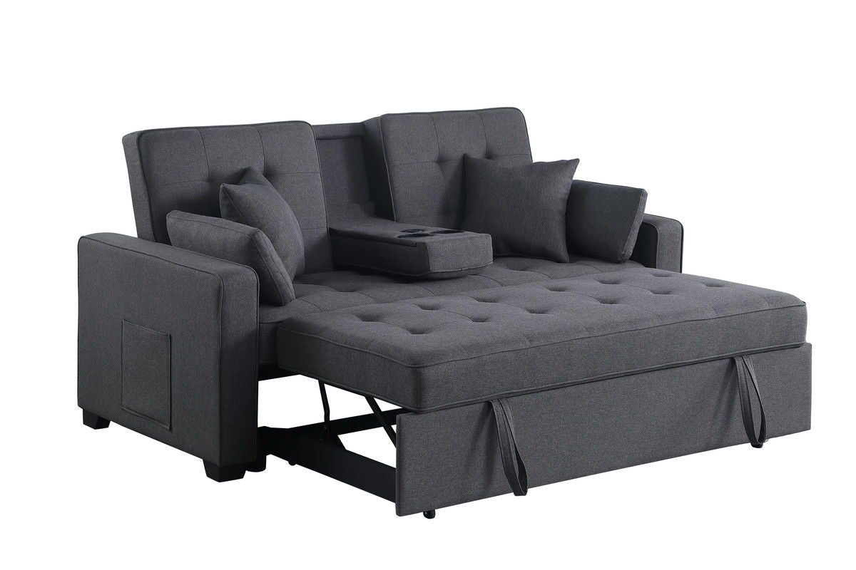 Cody II 70"W Dark Gray Linen Convertible Sleeper Loveseat with Dropdown Console, Cup Holders, Charging Ports, Pocket, and Pocket Coil Seating