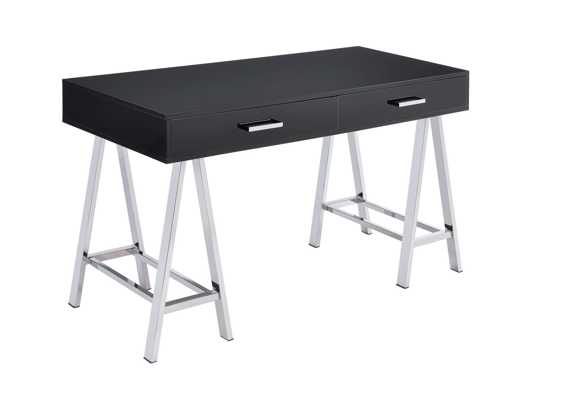 Coleen - High Gloss Writing Desk With USB - Black / Chrome