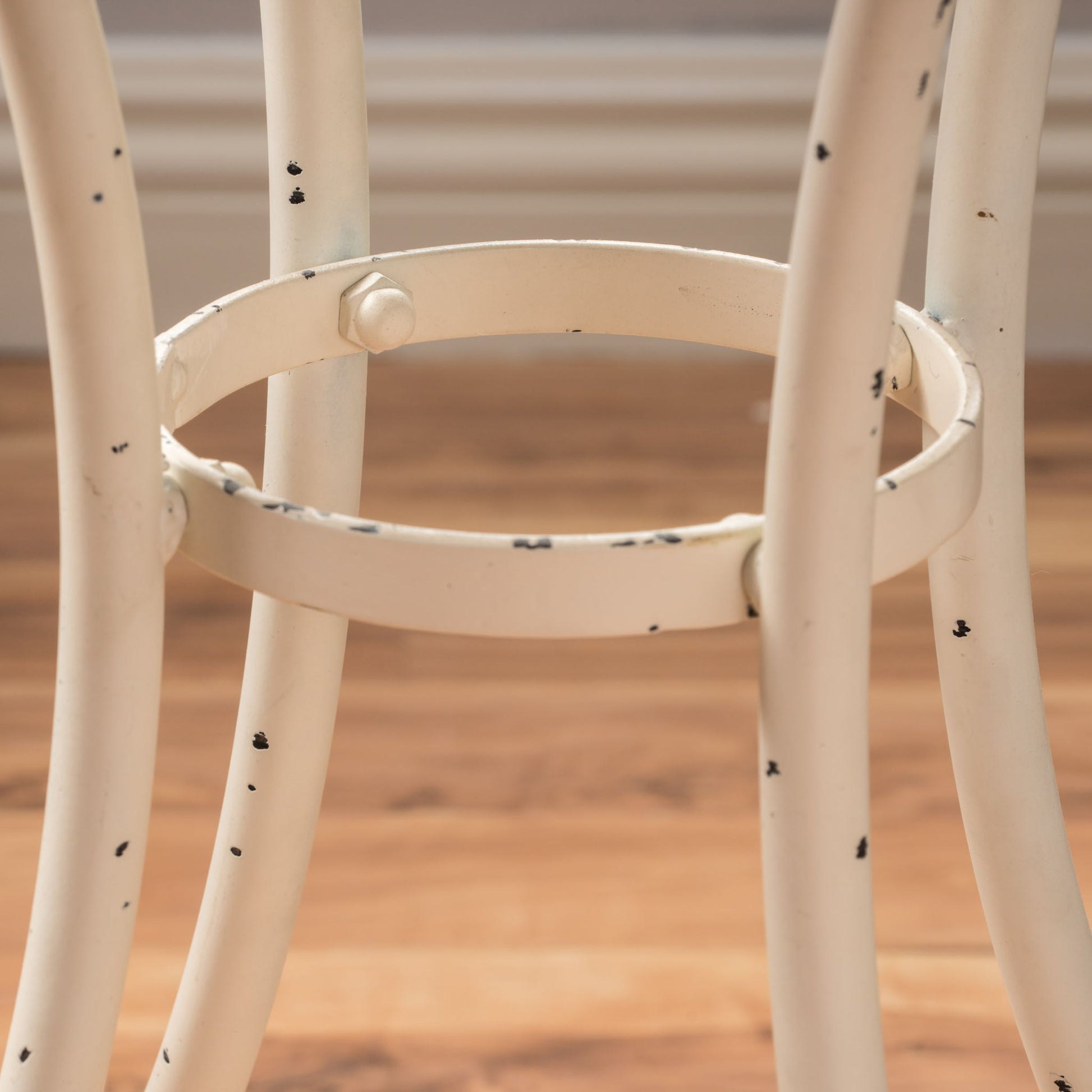 - Durable Construction: Crafted from weather and water-resistant iron, the set includes a round table and two armchairs with splat backs. The slatted details ensure water doesn't pool, ma it ideal for outdoor use.