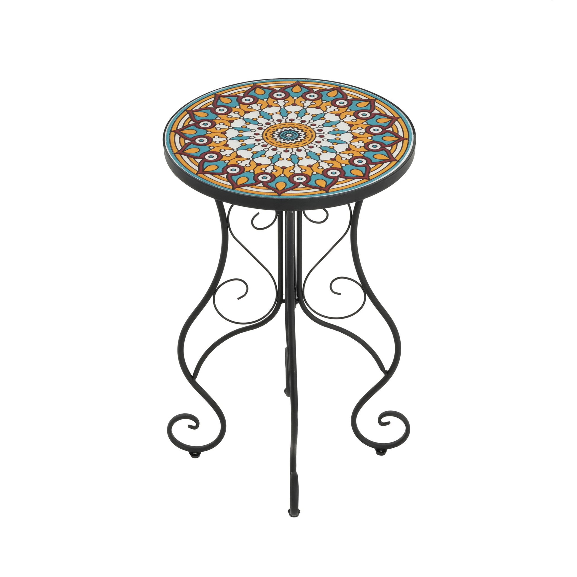 Outdoor Side Table With Ceramic Tile Top And Powder Coated Steel Frame - Black / Colorful