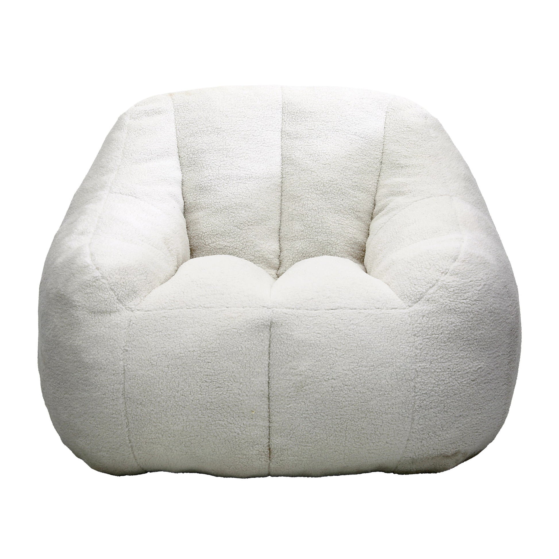 Comfy Bean Bag Chair With Memory Foam Filler - Tufted Soft Stuffed Bean Bag Sofa For Dorm, Apartment, Or Living Room - White