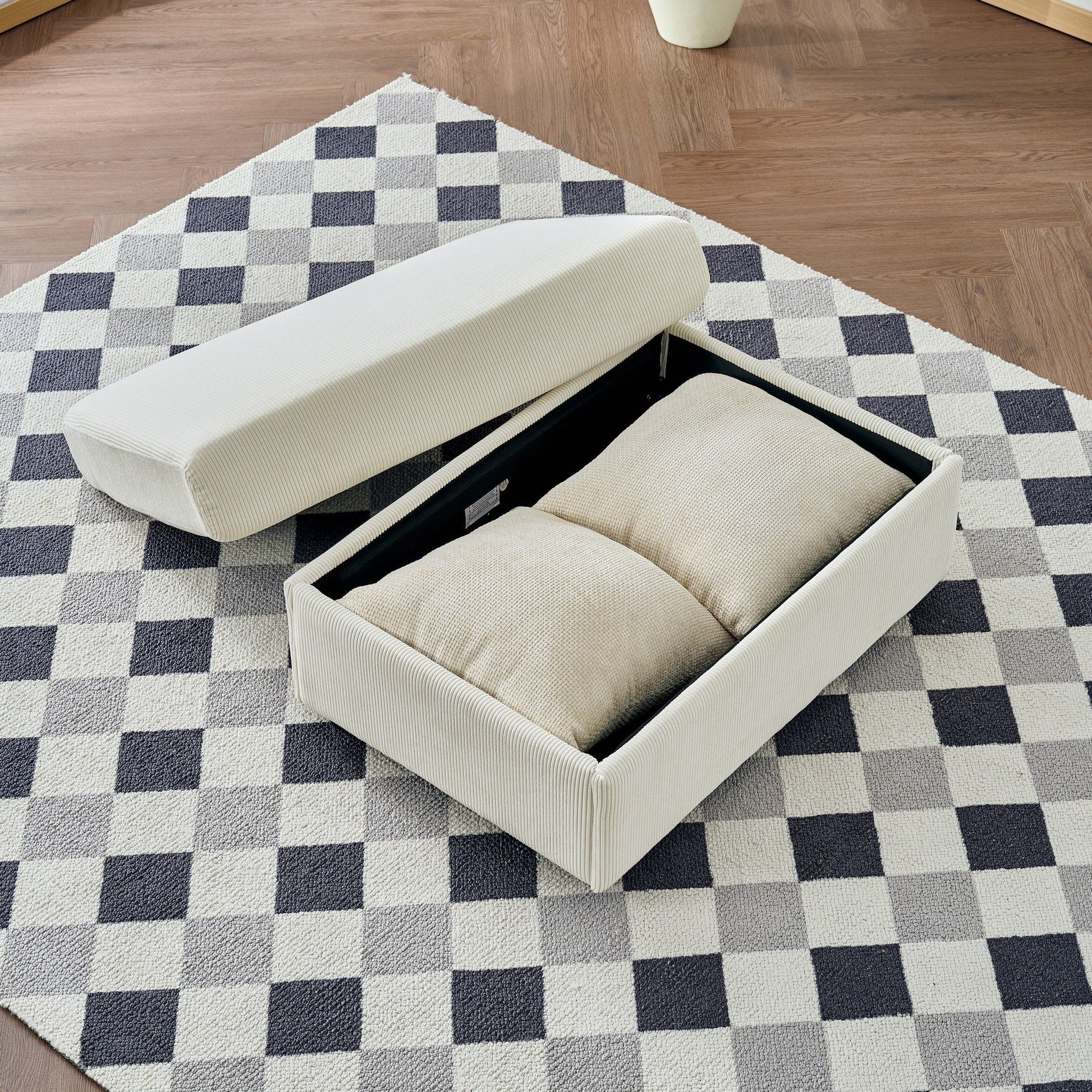 Comfy Corduroy Oversized Chaise Lounge Chair With Ottoman And Storage