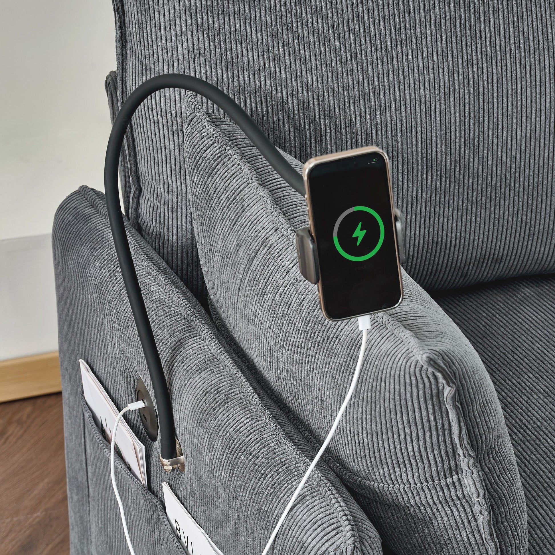 Comfy Corduroy Oversized Chaise Lounge Chair With Ottoman And Storage - Gray