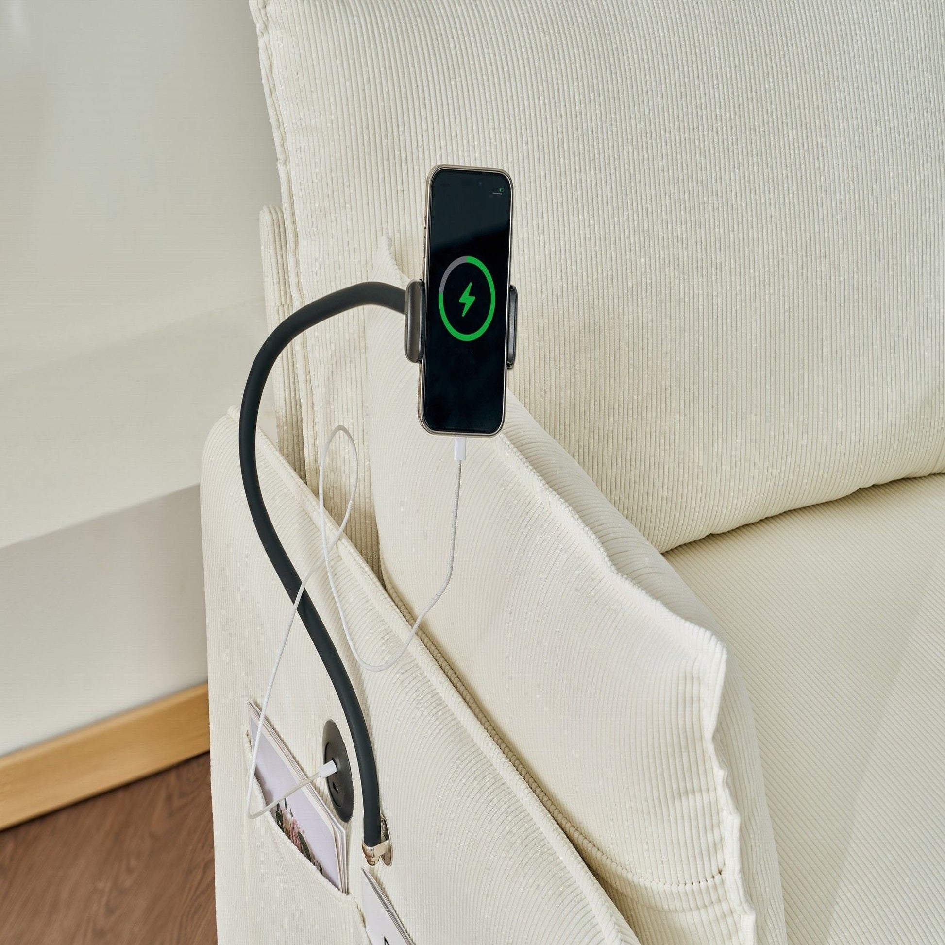- Charge & Chill: Built-in USB-A and USB-C ports keep your devices powered, plus a 360° adjustable phone holder.