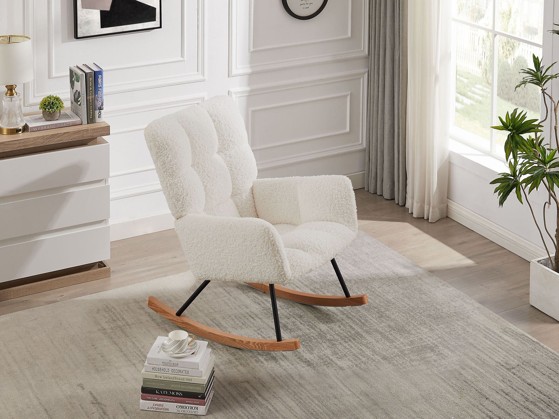 Comfy Upholstered Lounge Chair Rocking Chair With High Backrest, For Nursing Baby, Reading, Napping - Off White