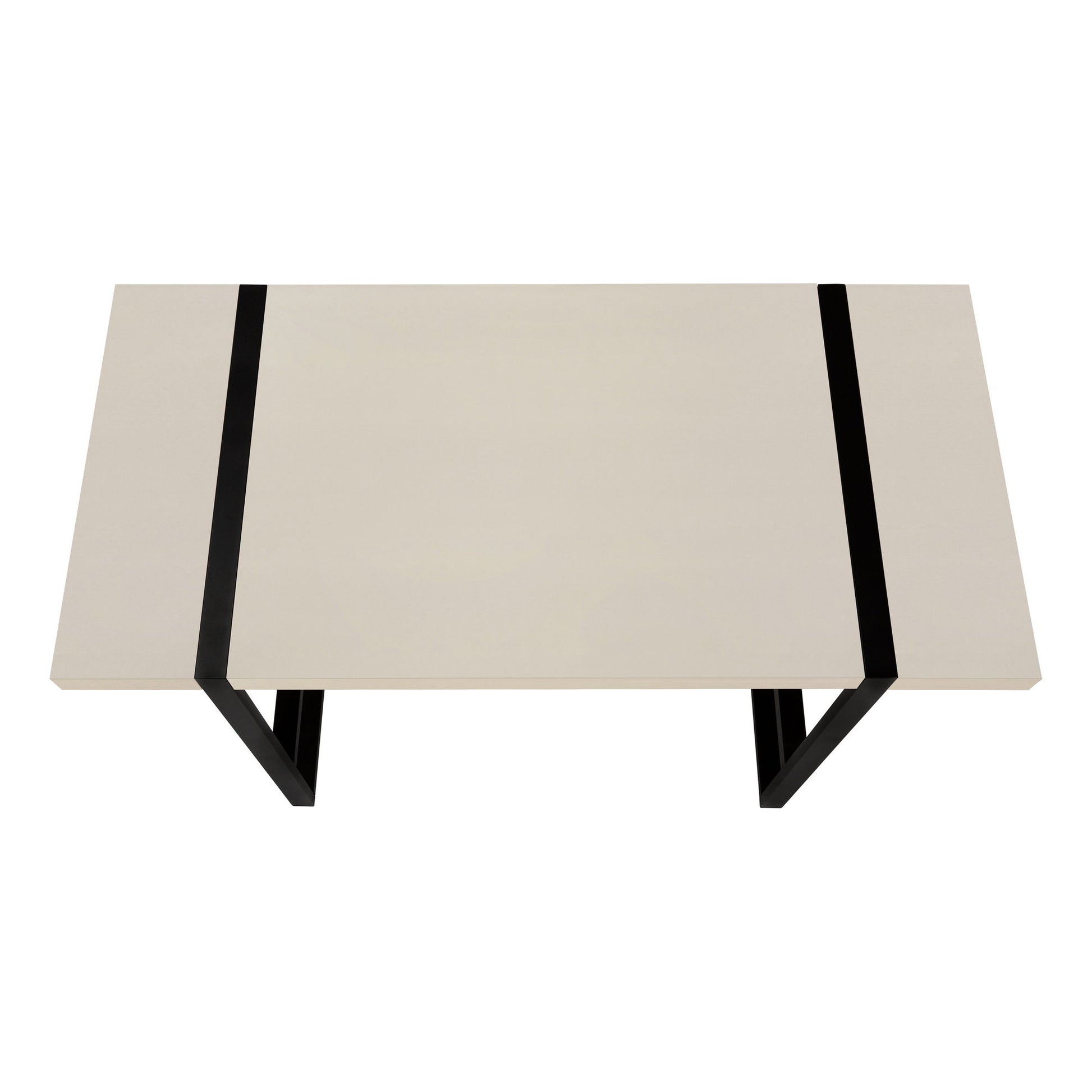 - Sturdy Metal Legs: The desk is supported by robust metal legs with a finish, integrated into the desktop for an intriguing visual effect and enhanced stability.