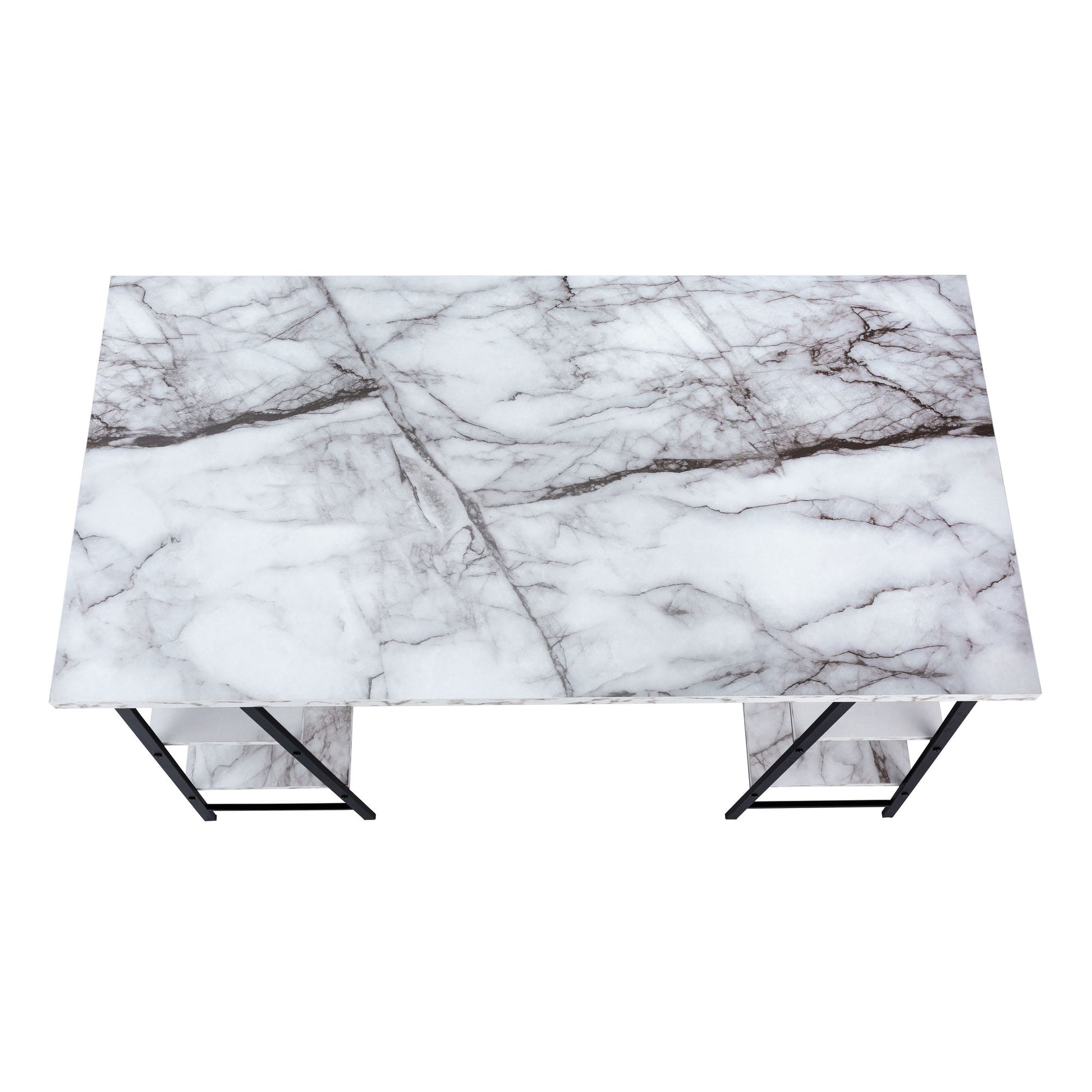 Computer Desk For Home Office, Laptop, Storage Shelves, Marble Look Contemporary & Modern - Black