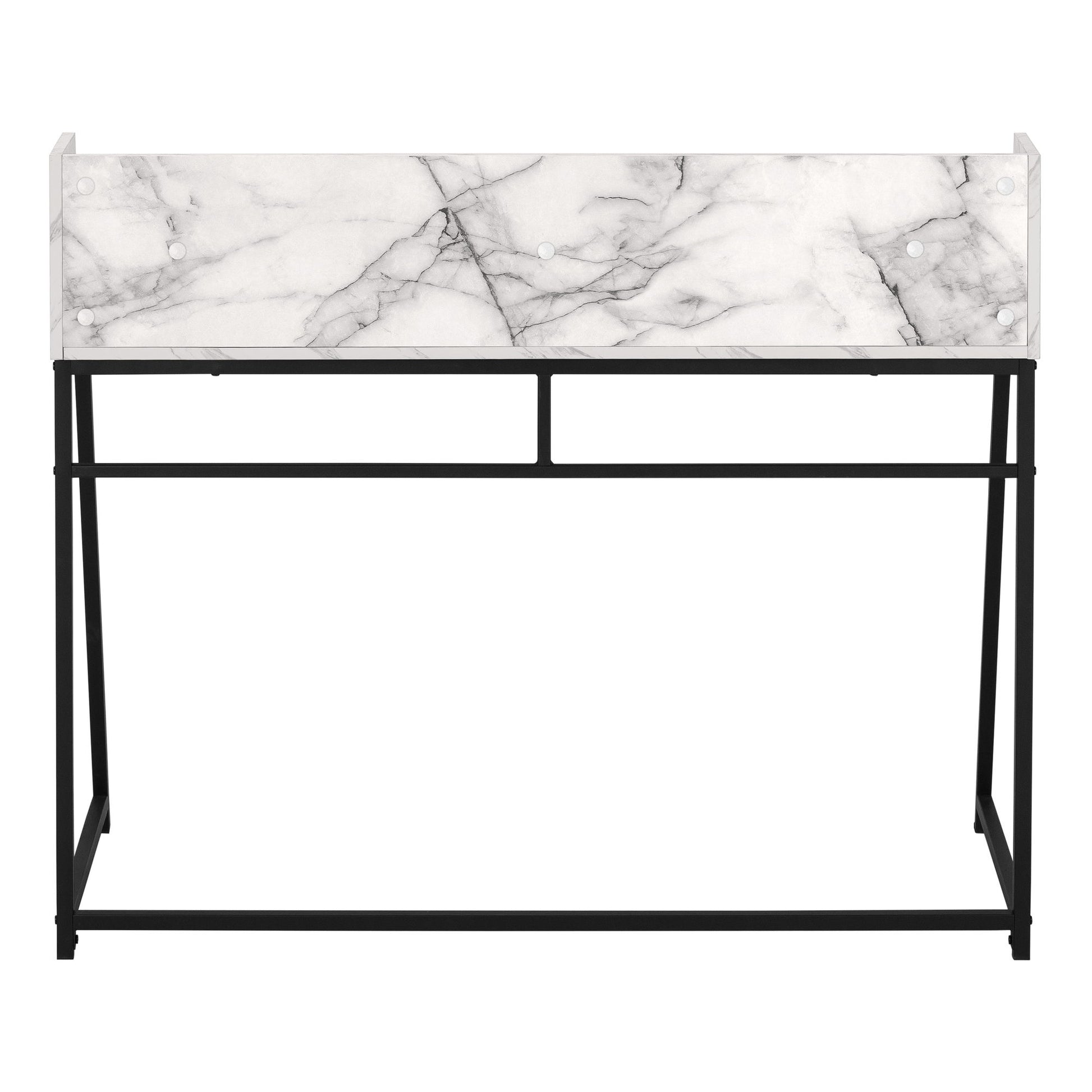- Stylish Design: The computer desk features a marble-look finish with a small hutch and a long shelf in a contrasting finish, adding a modern touch to your home office.