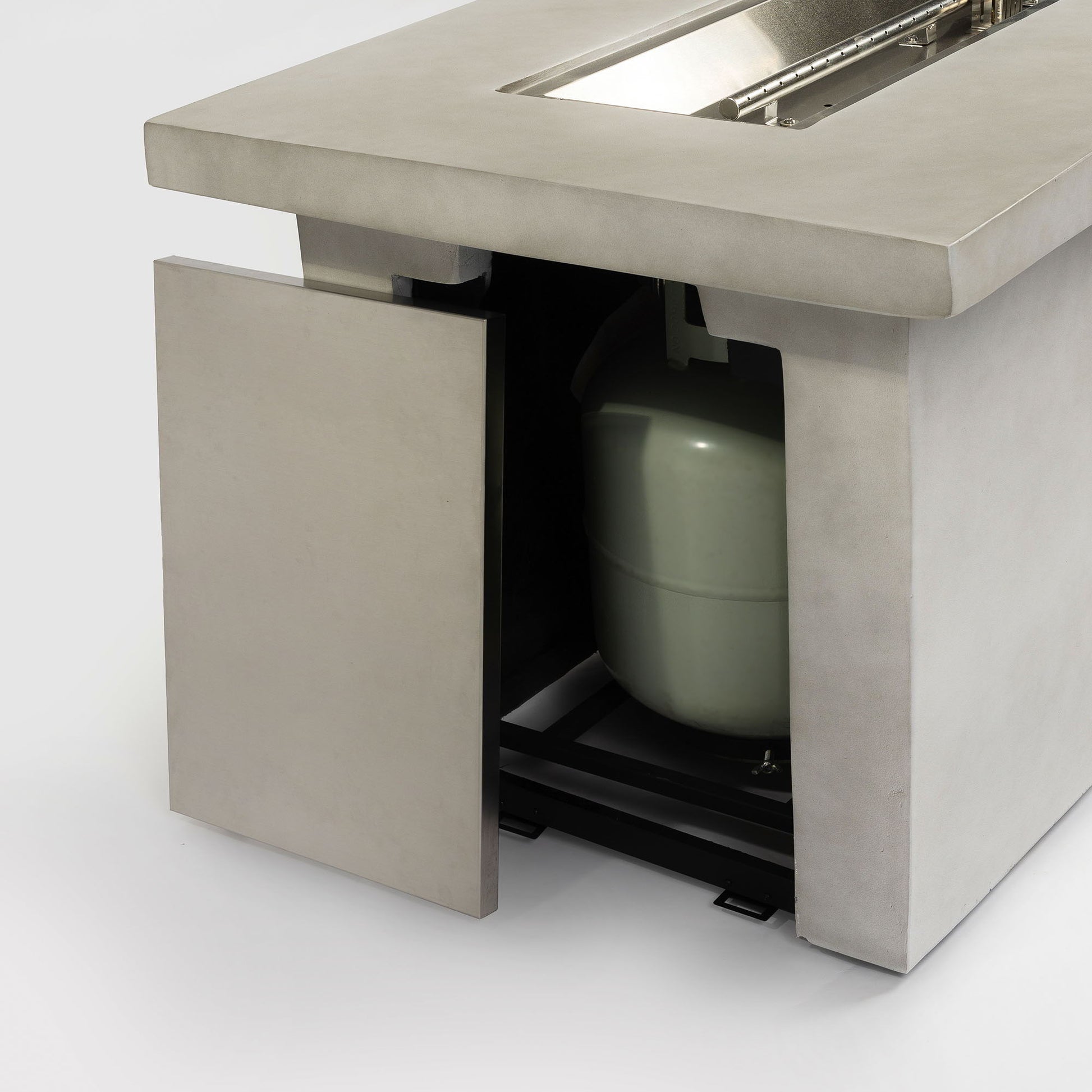 - Fire Pit Table Highlights: Crafted from lightweight concrete , this rectangular fire pit table combines the elegance of natural stone with versatile seating options. Its elongated design invites cozy gatherings, offering warmth and ambiance on cool evenin