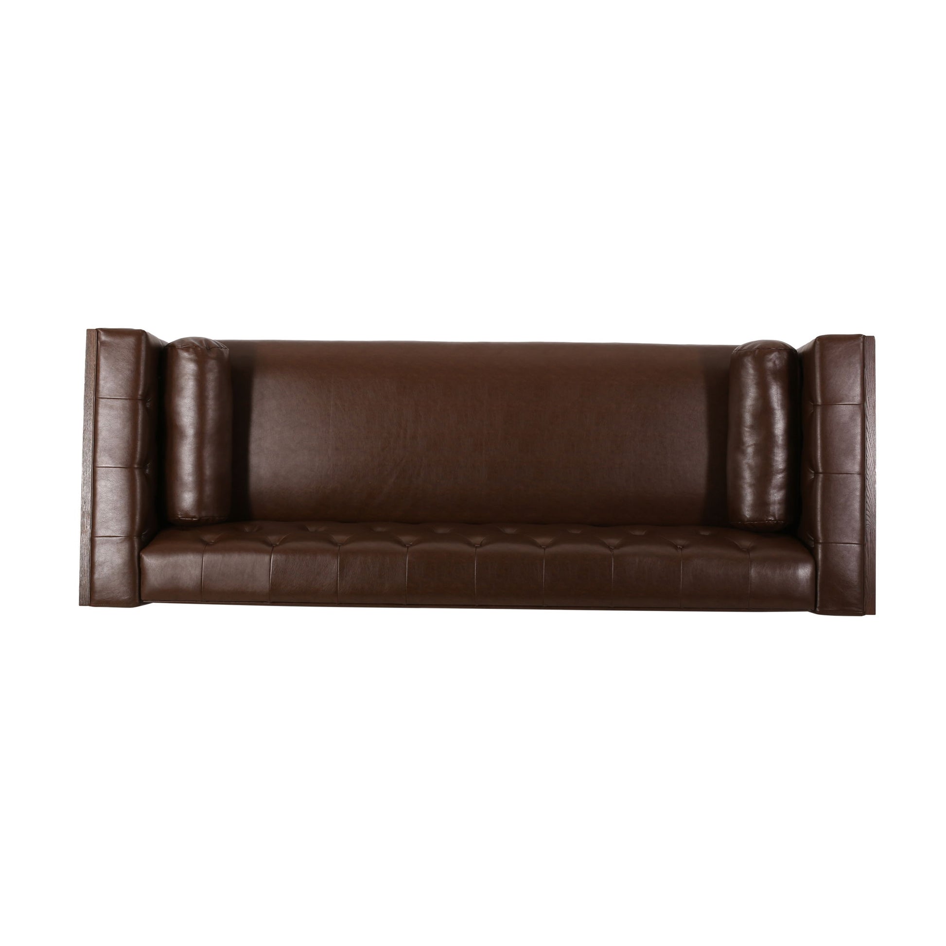 Contemporary 3 Seater Sofa With Tufted Diamond Stitch And Rolled Accent Pillows - Dark Brown