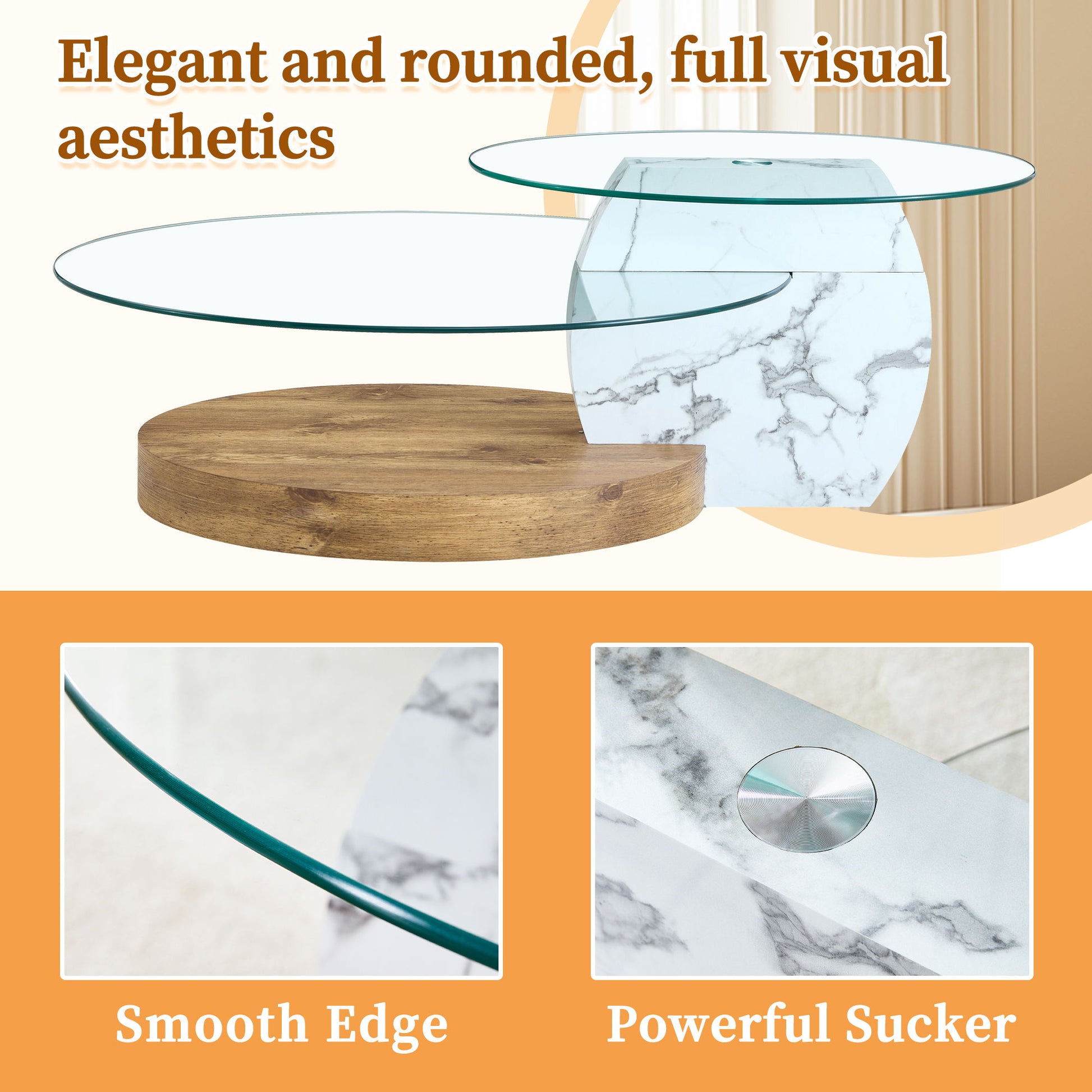 Contemporary Artistic Double Layer Coffee Table And Marble Collision Tempered Glass Top - Transparent / White / Black