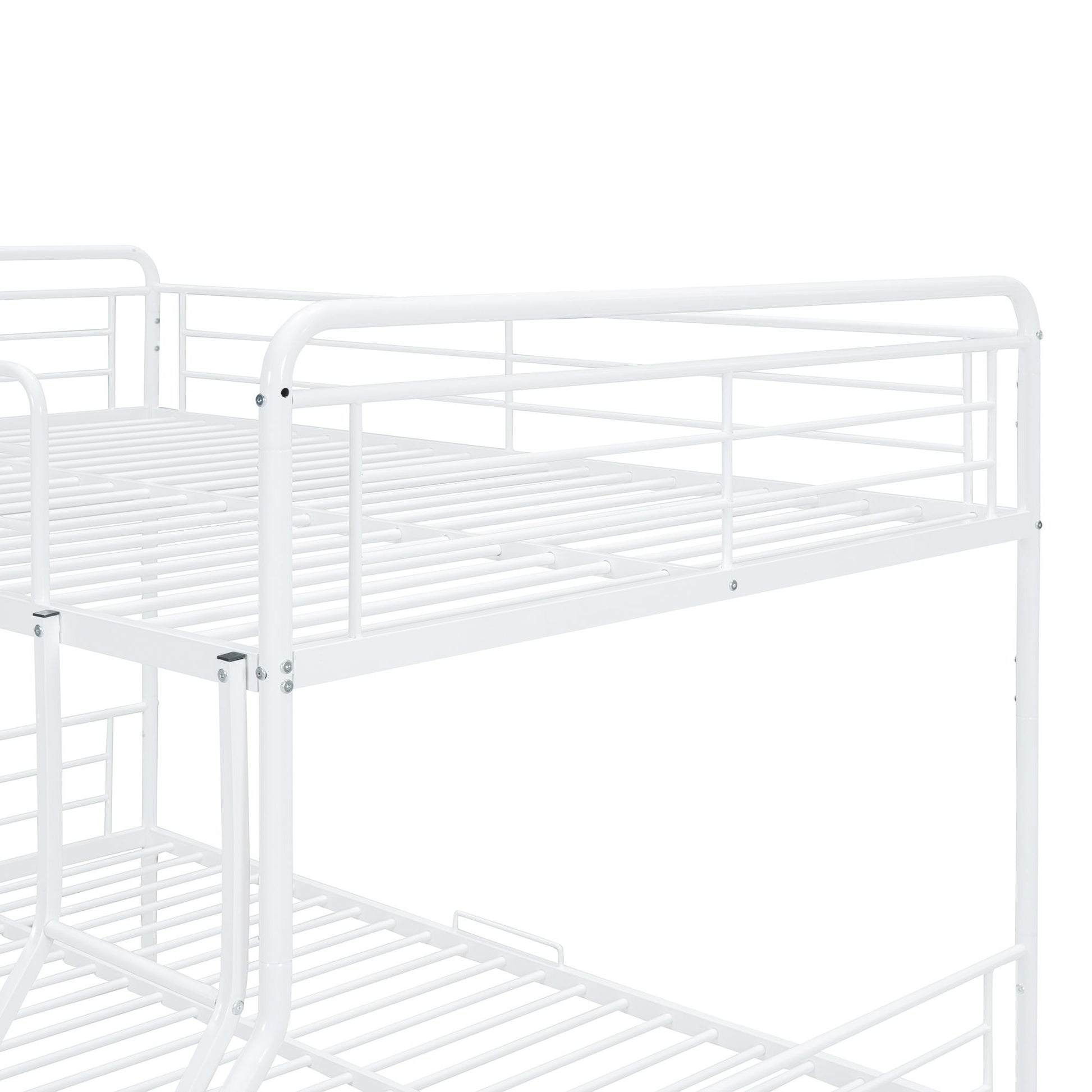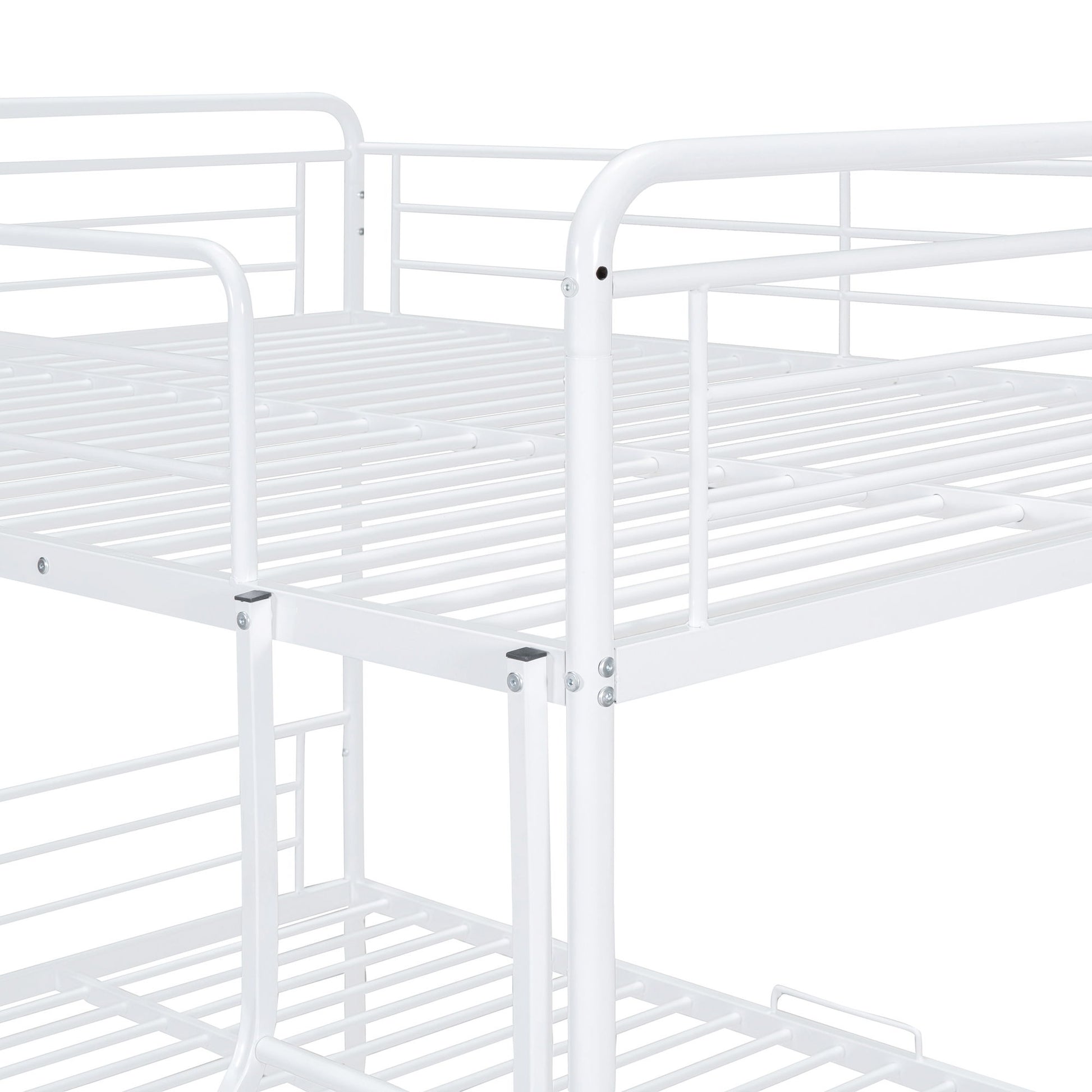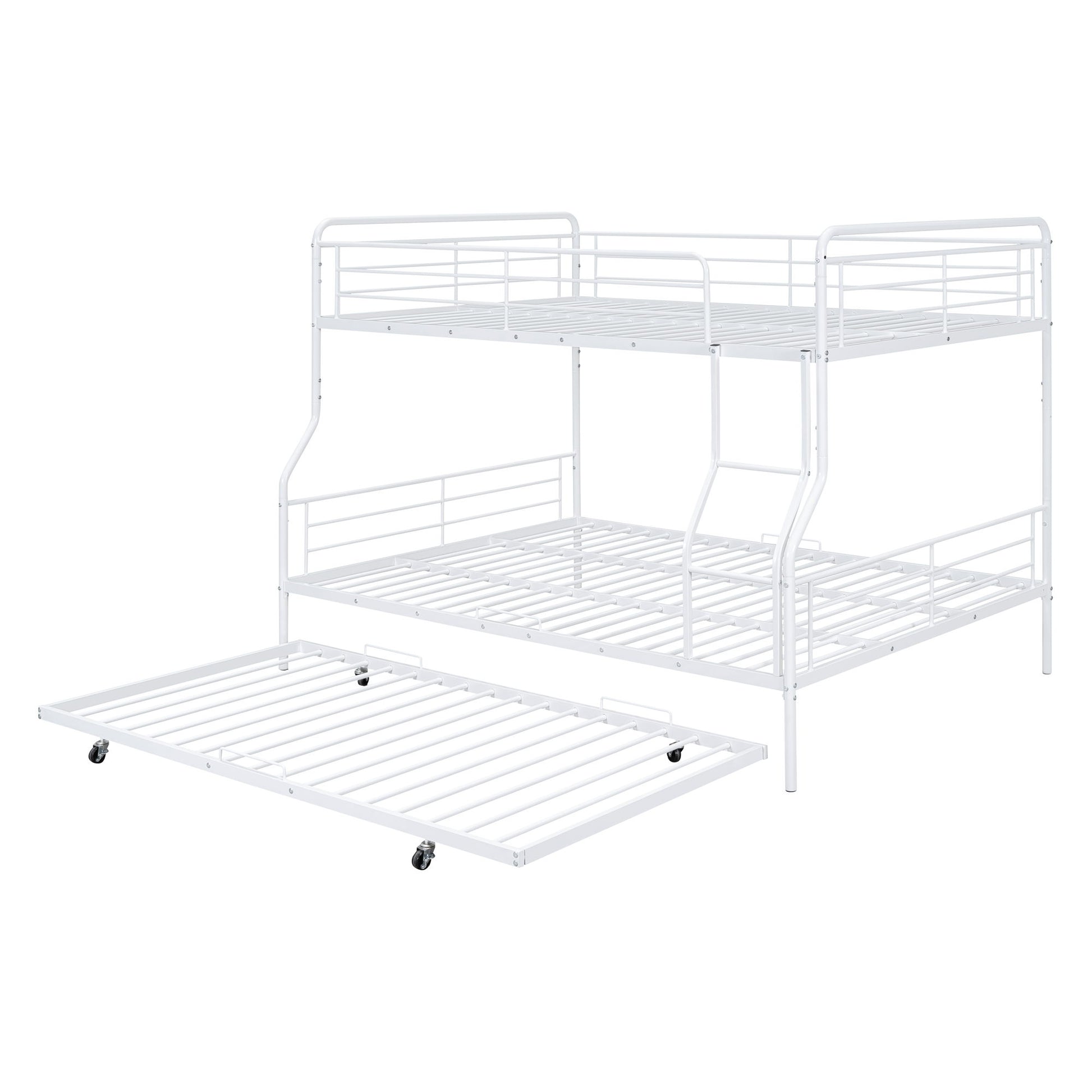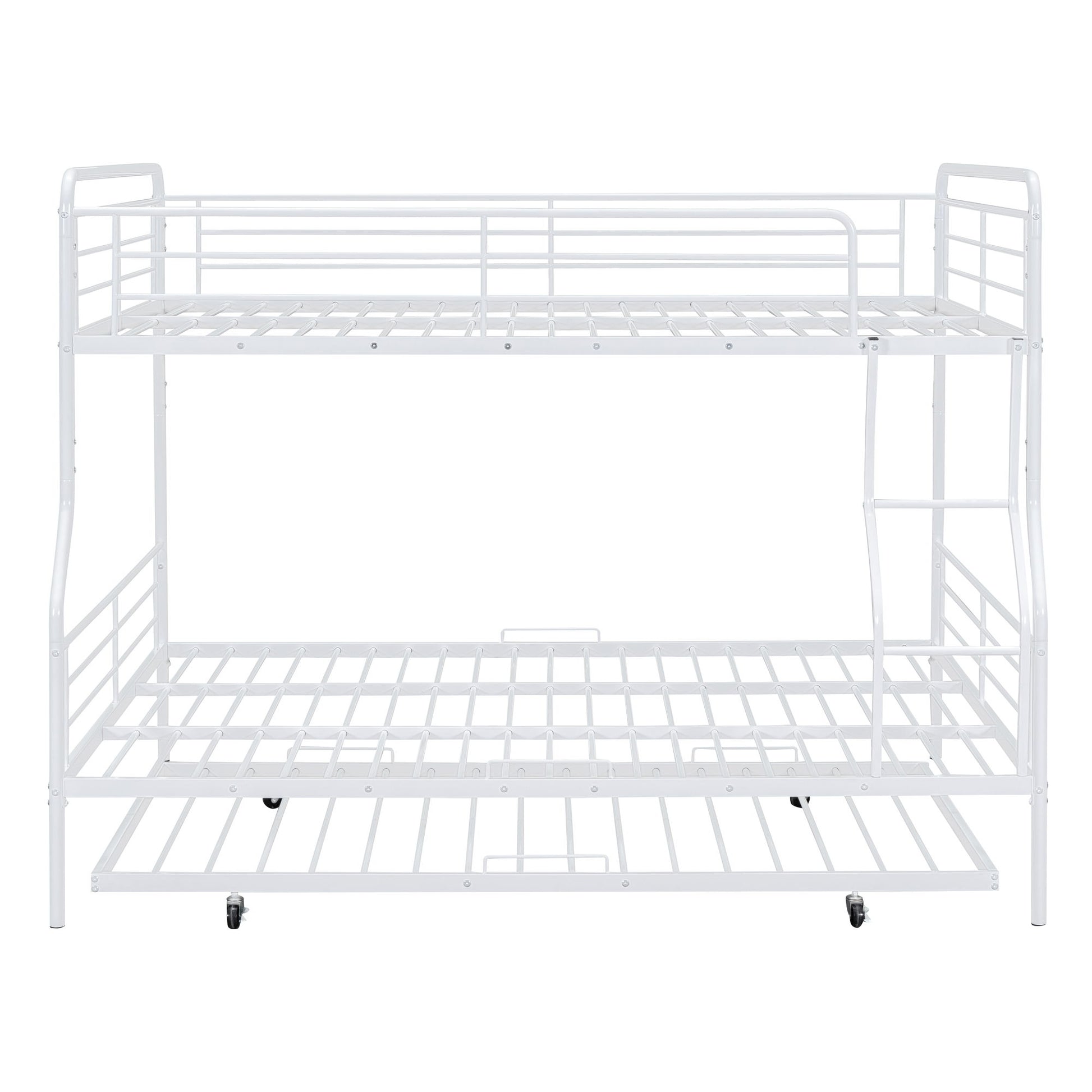 Full Long Over Queen Bunk Bed With Twin Size Trundle - White