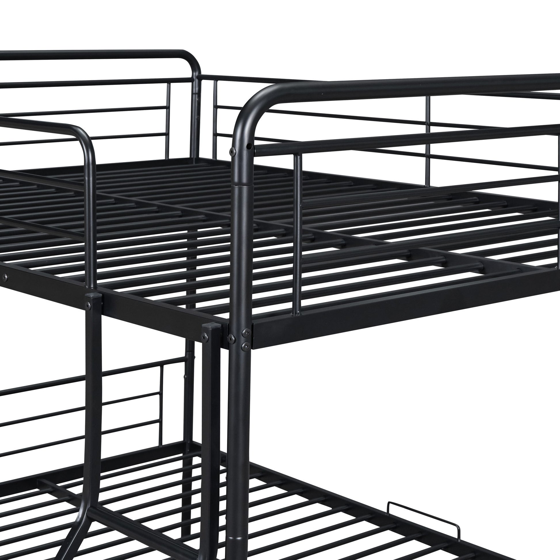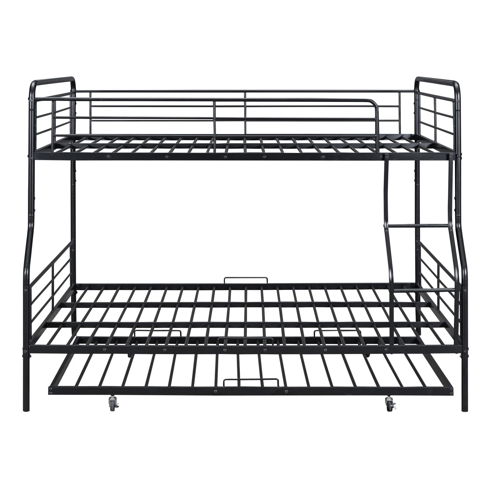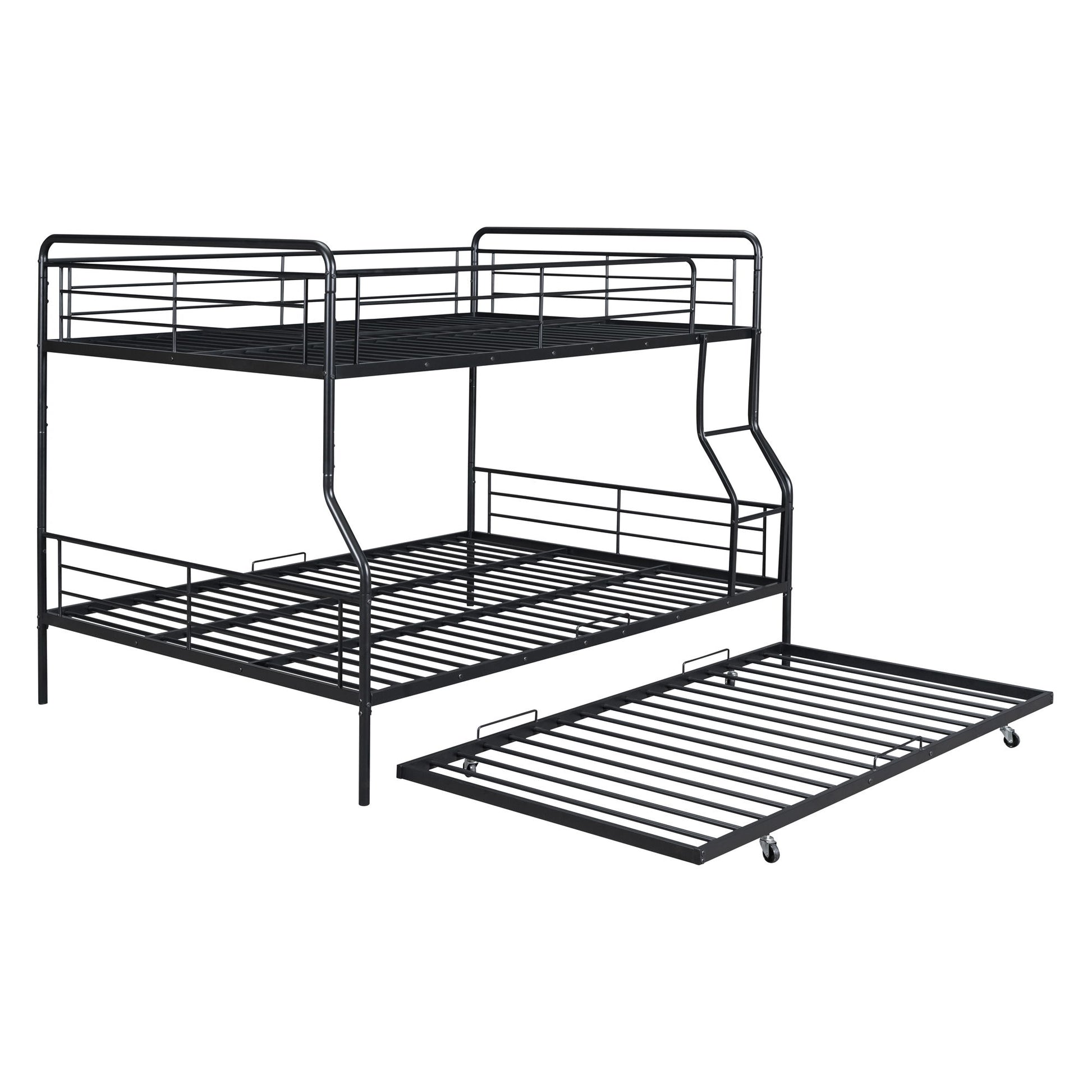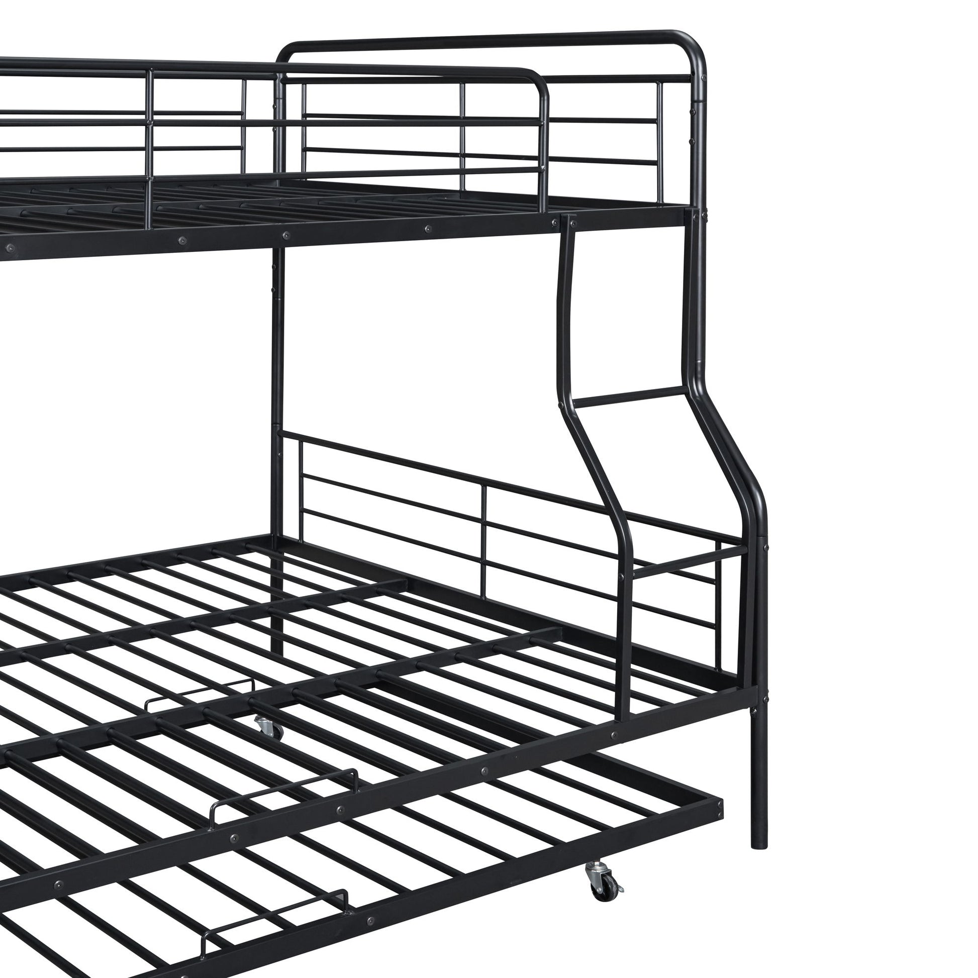 Full Long Over Queen Bunk Bed With Twin Size Trundle - Black