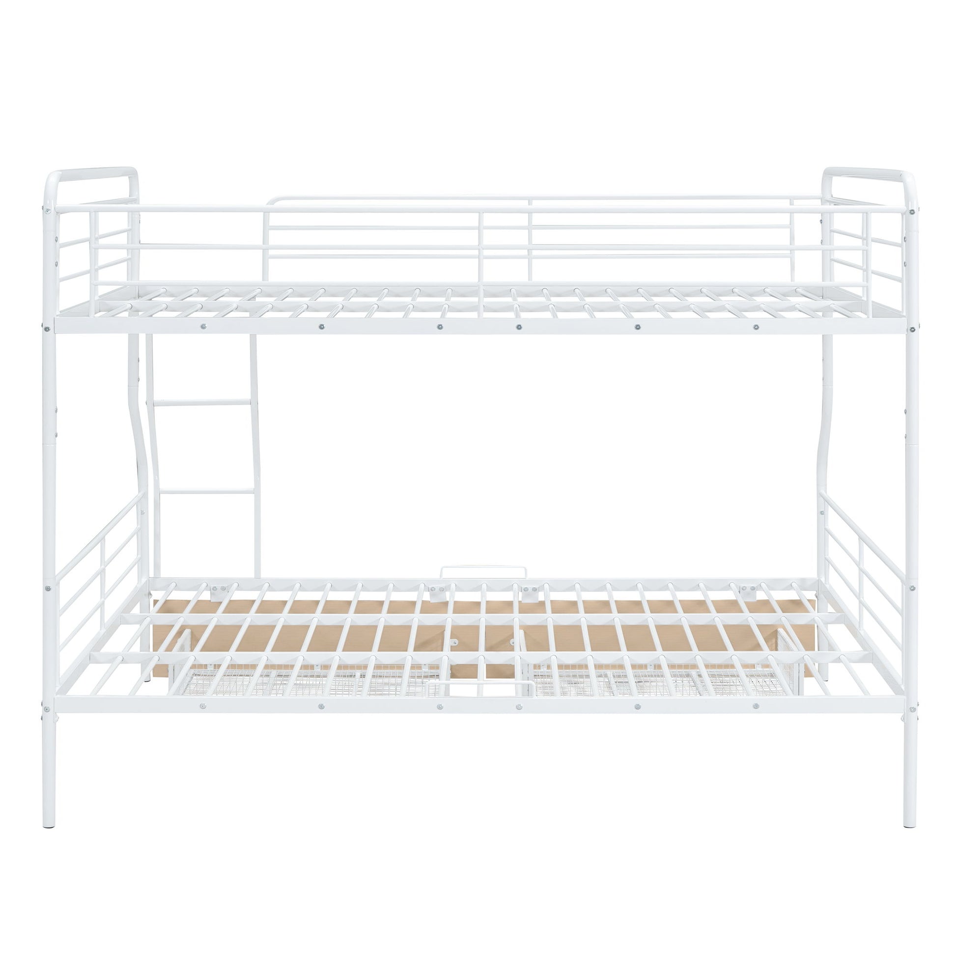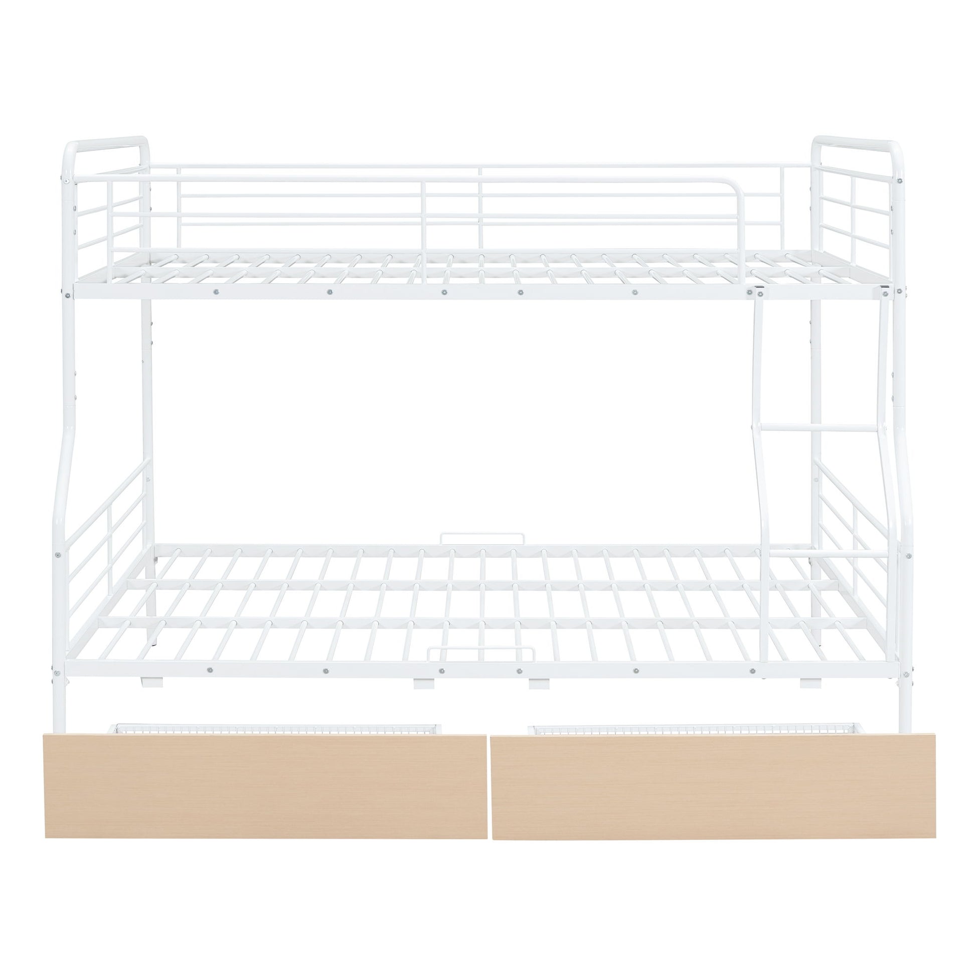 Full Long Over Queen Bunk Bed With 2 Drawers - White