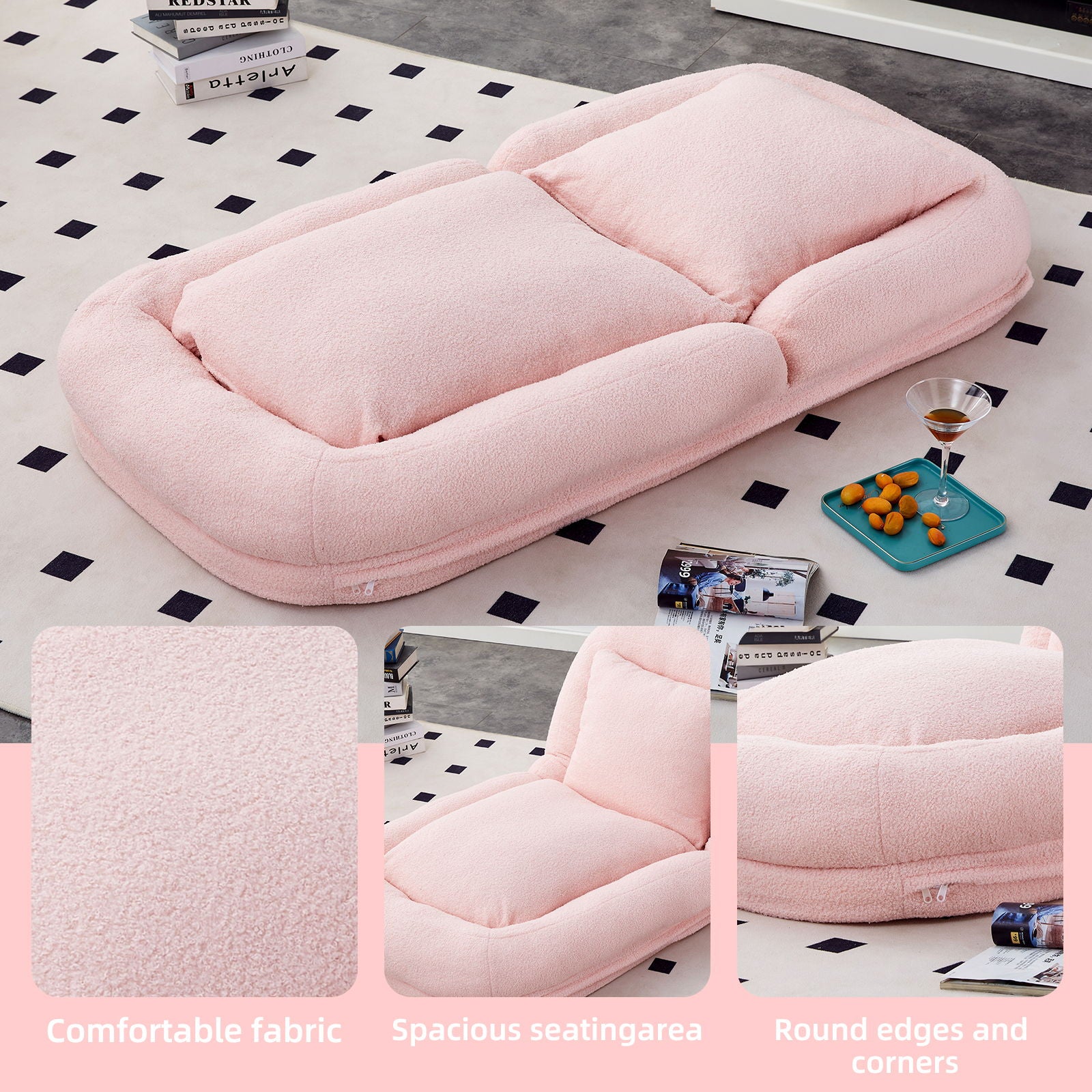 Modern Plush Folding Sofa Chair With 5 Adjustable Positions Teddy For Gaming And Relaxation - Pink Epu
