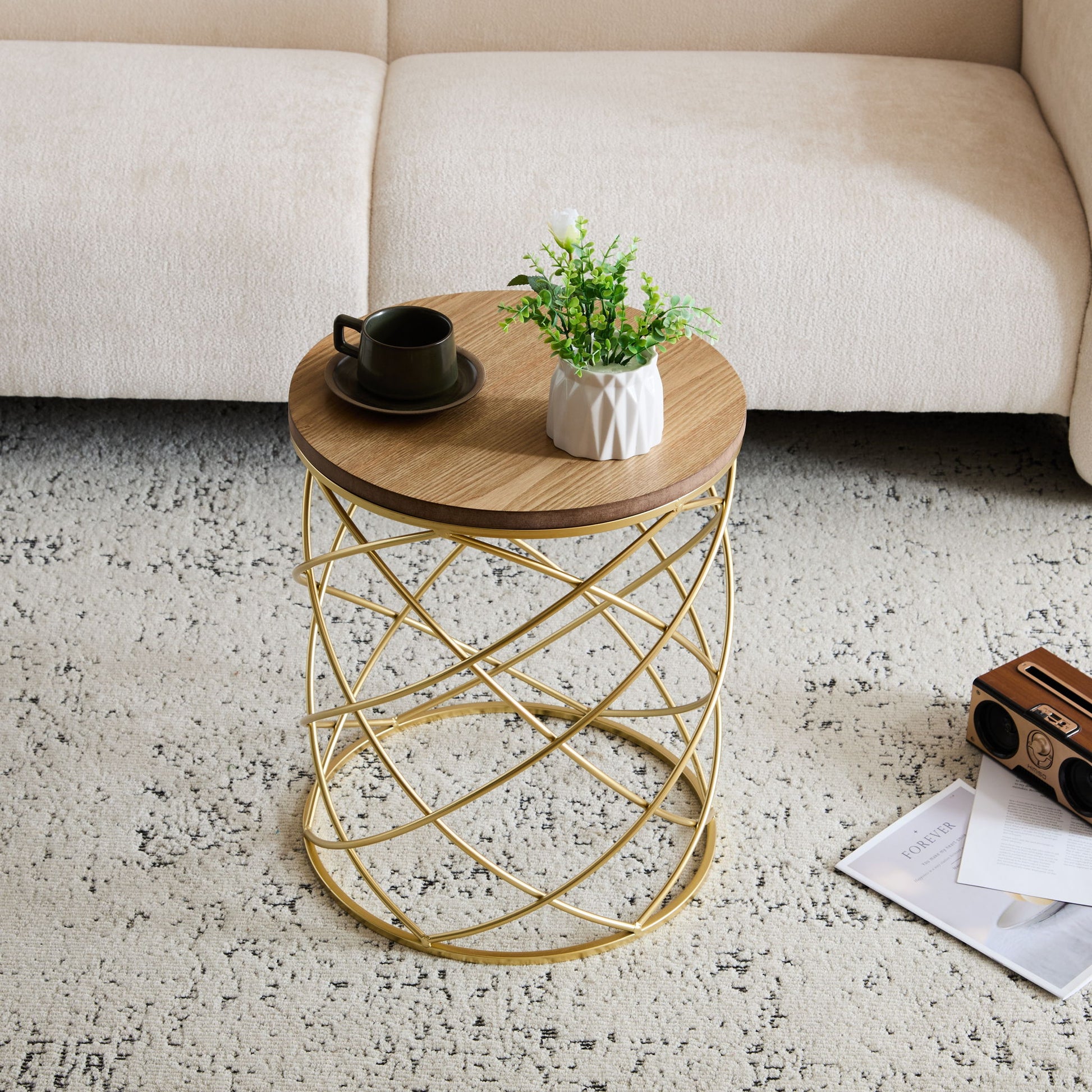 - MODERN DESIGN: This side table is the perfect blend of wood top and metal frame. The base frame is an interlocking mesh that brings a unique charm to the whole product.