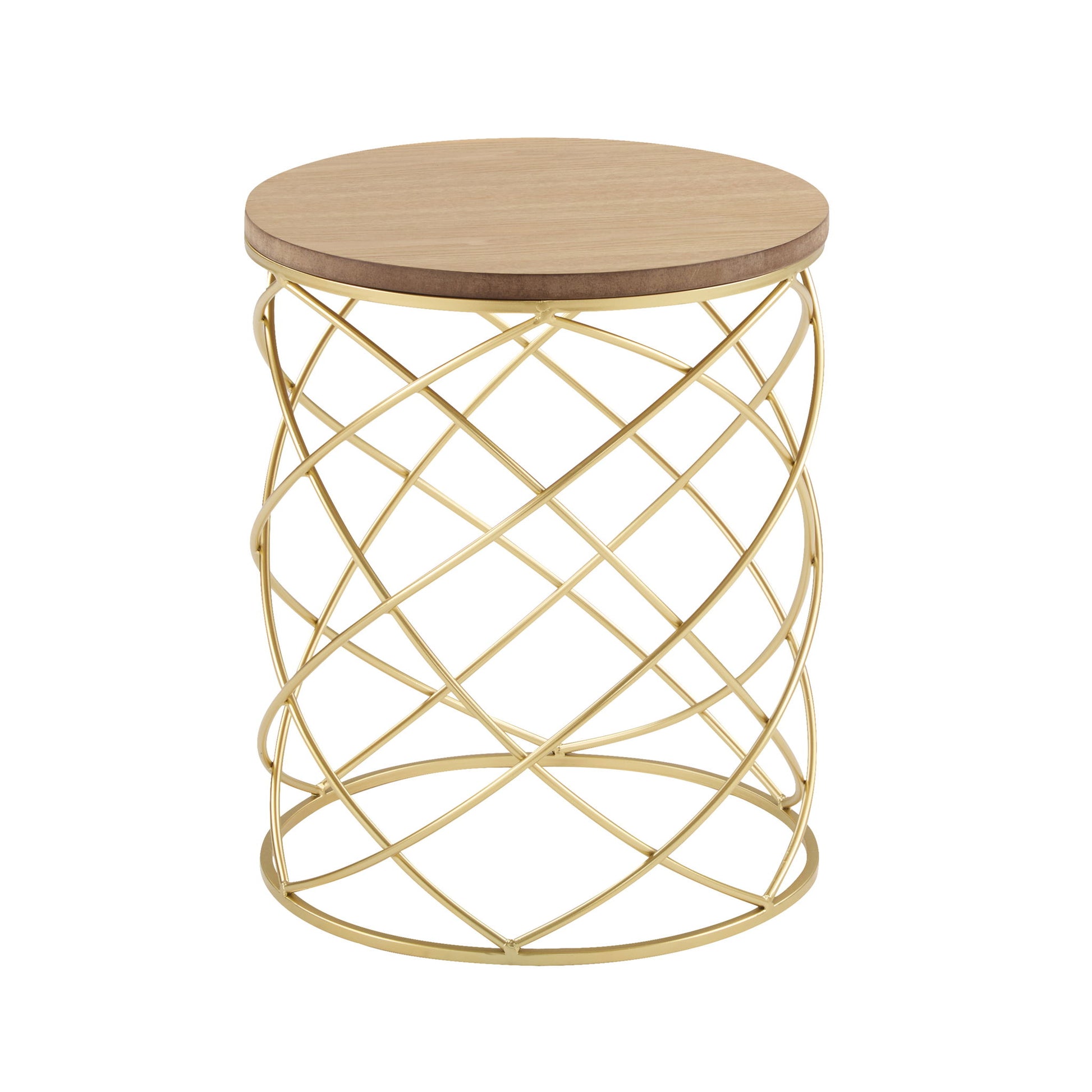 Contemporary Golden Side Table With Top And Metal Frame - Natural / Gold