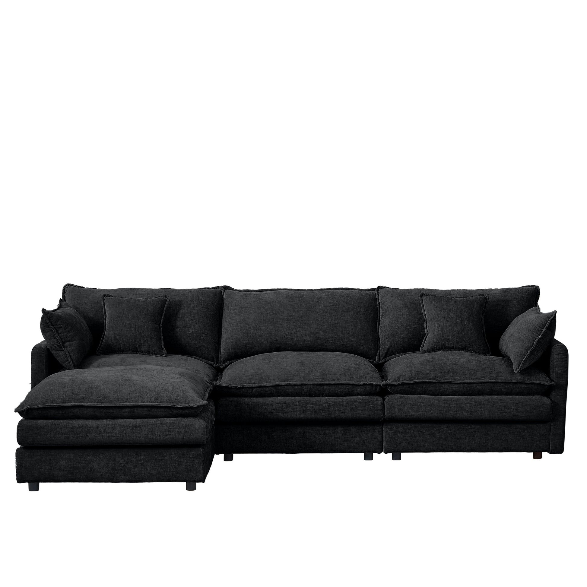 Modular Sectional Sofa L Shaped Couch Set Comfy Cloud Couches With Movable Ottoman Chenille - Black